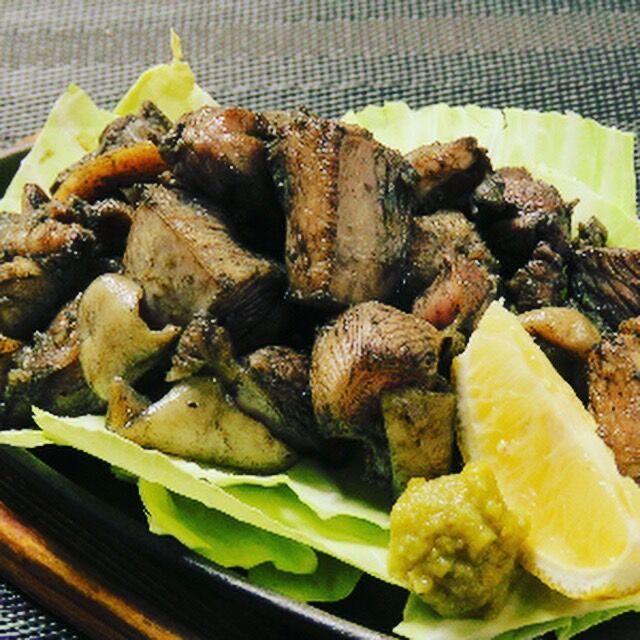2種類の鶏肉を使用し、表面を黒くなるまで炙る調理方法とのこと。