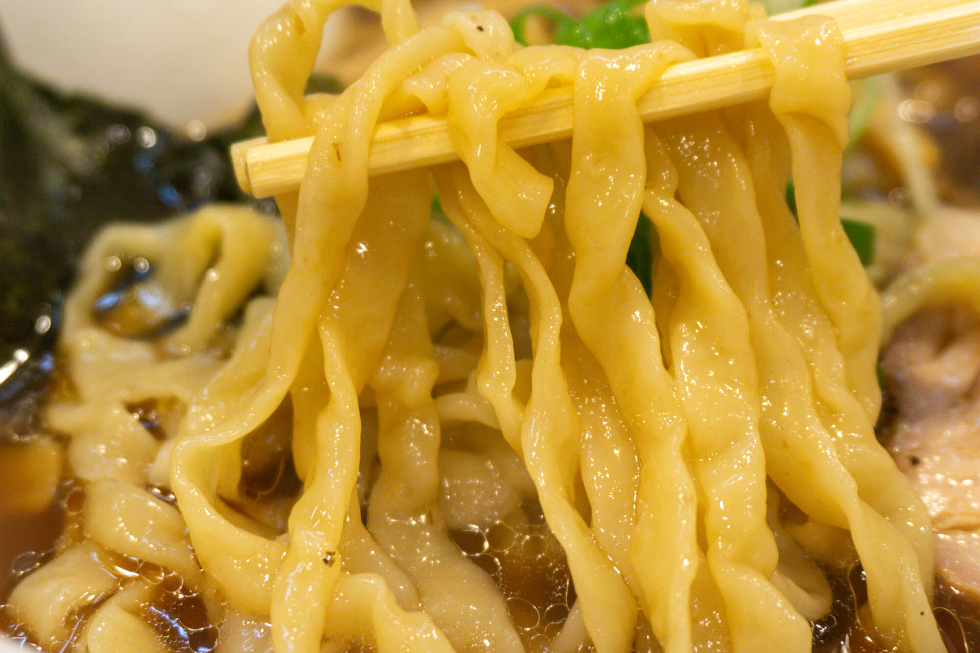 スープがしっかりと絡んで、もはやトッピングなしでも楽しめる麺です。