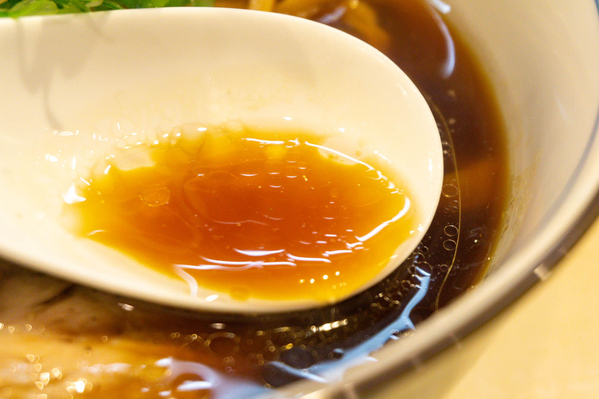 スープは濃いめの色ですが、すくうと透き通っていて鶏の旨味が凝縮されています。
