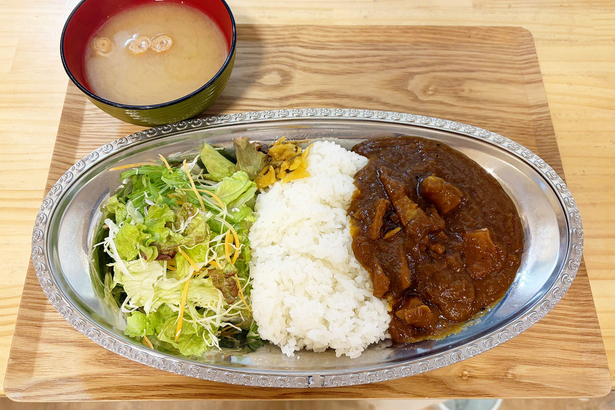 今日はしっかりお腹がすいていたので、日替わり定食の「牛すじカレー(みそ汁付)」を注文しました!