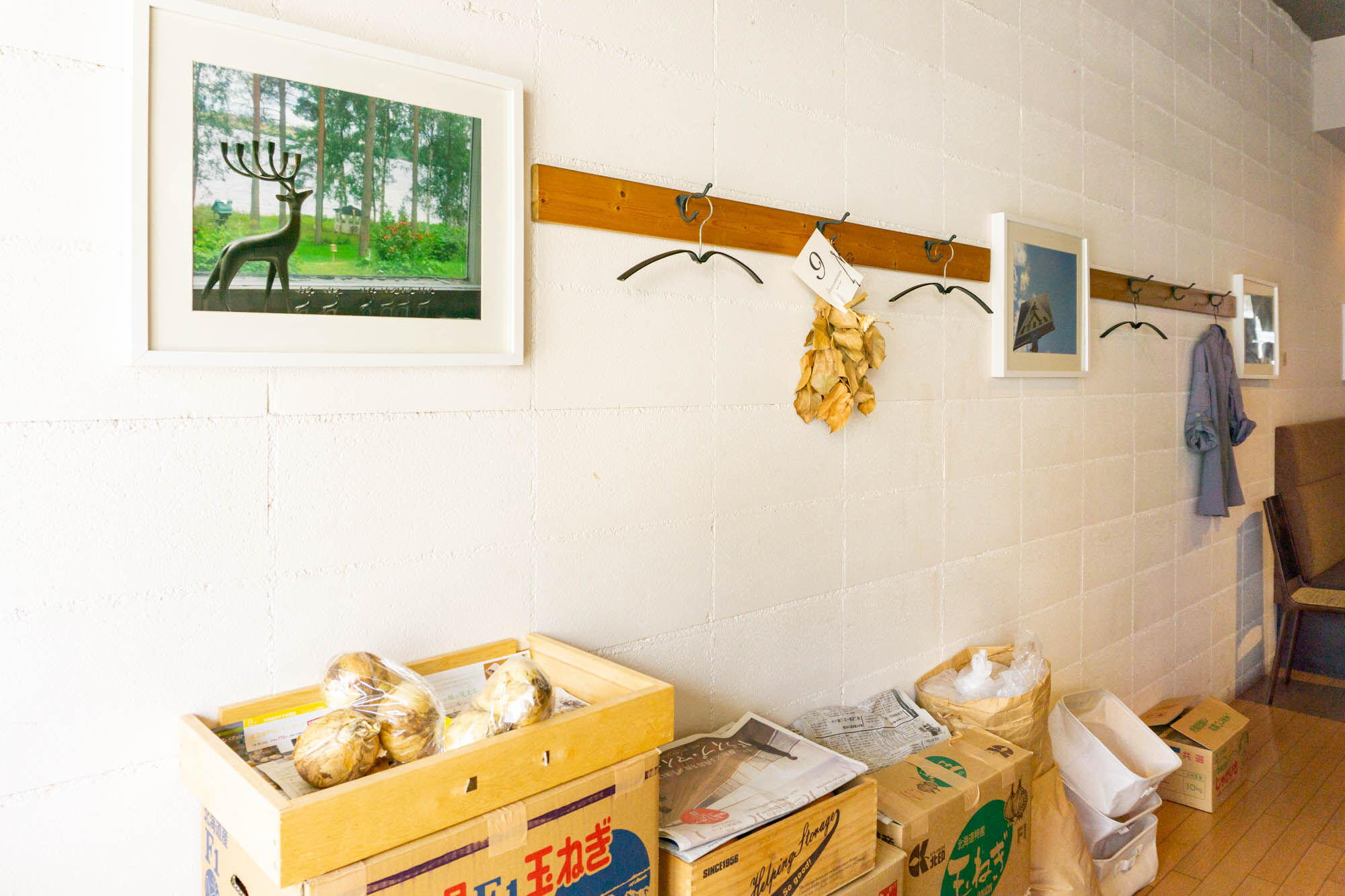 カウンター席の向かいにはハンガー掛け。