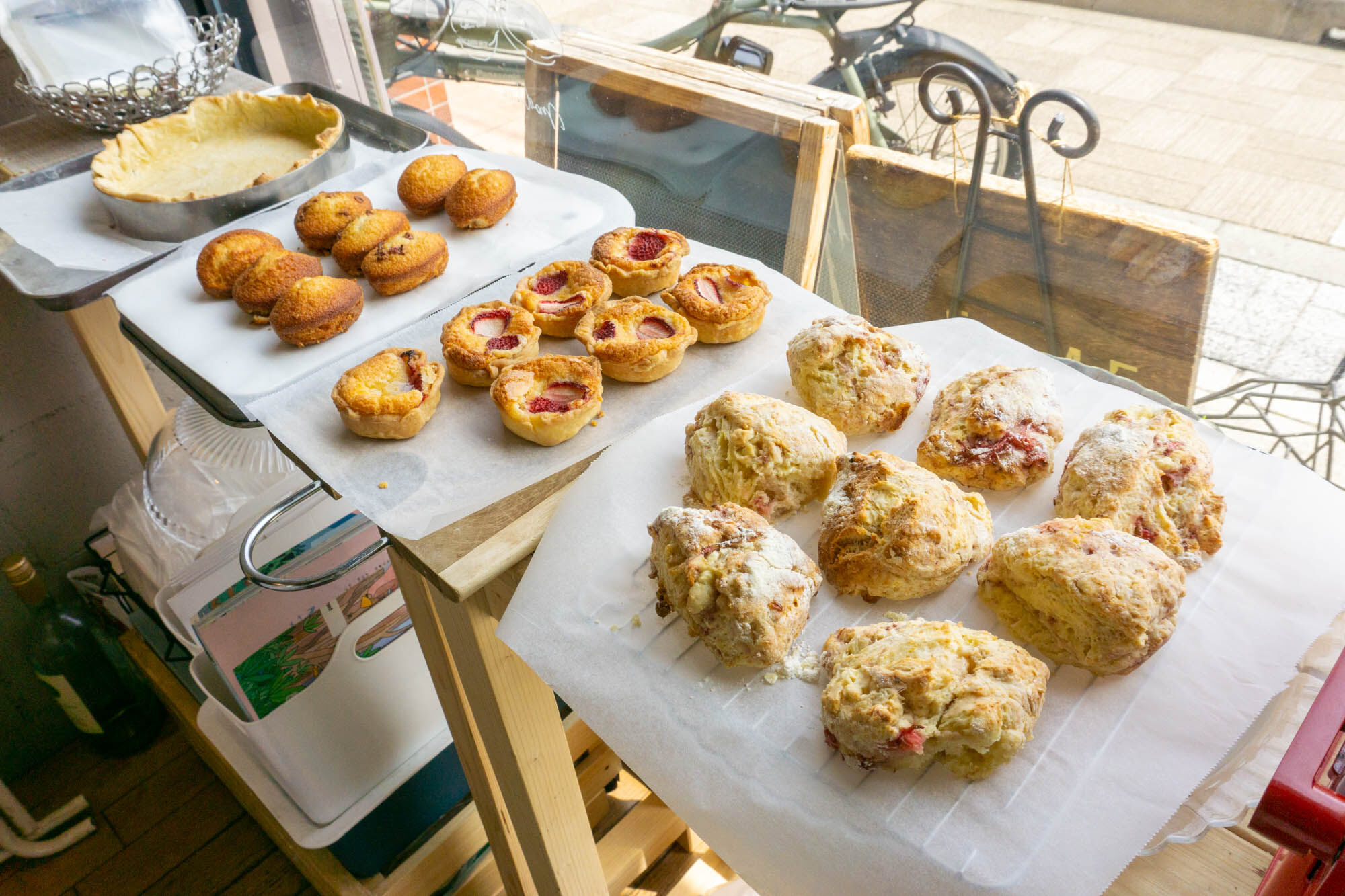 さっき外から見ていた焼き菓子たち。焼き上がり次第ここに並べられるみたい。