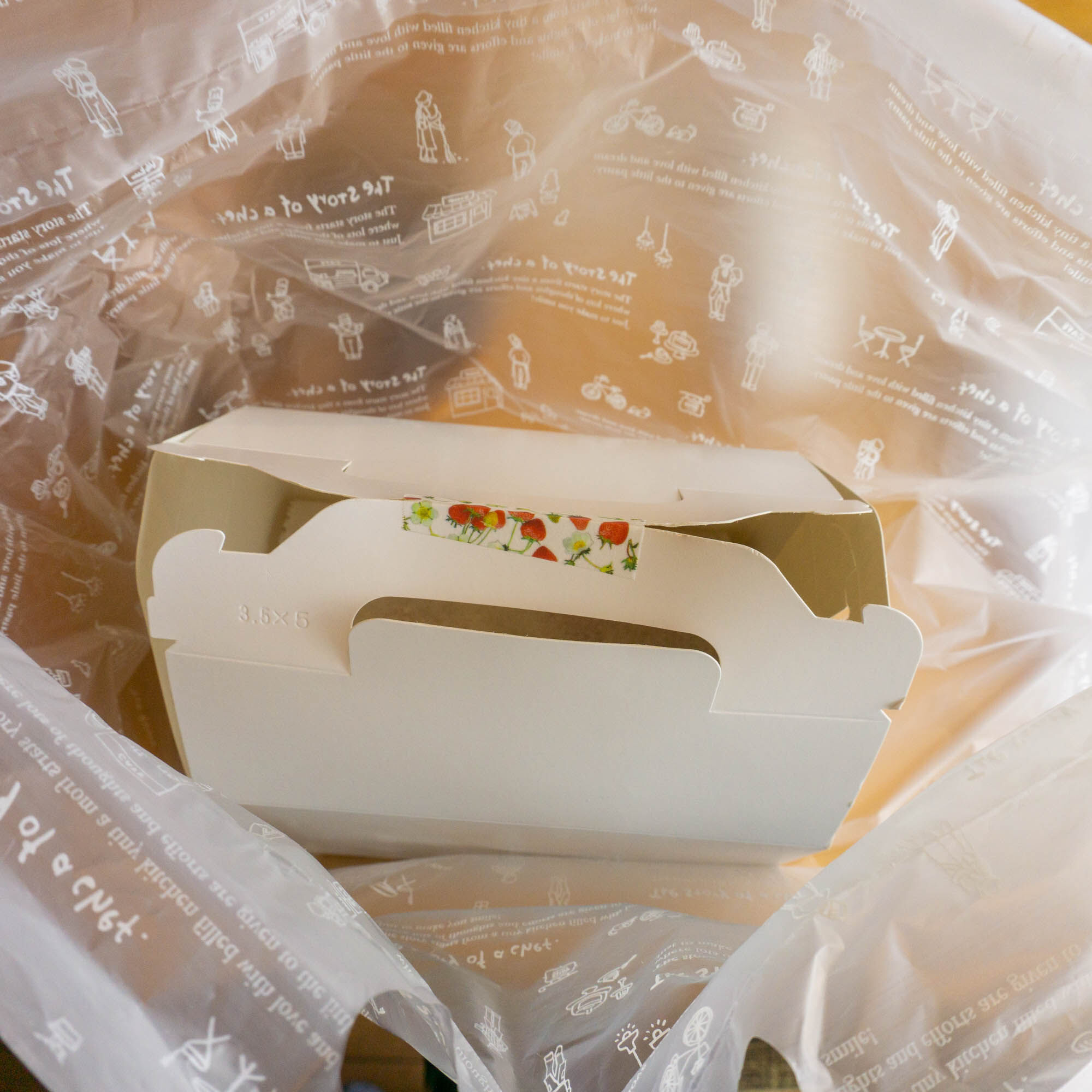 焼き立てでまだ熱いから、と箱を完全に閉めないでおいてくれました。心遣いが嬉しいですね。