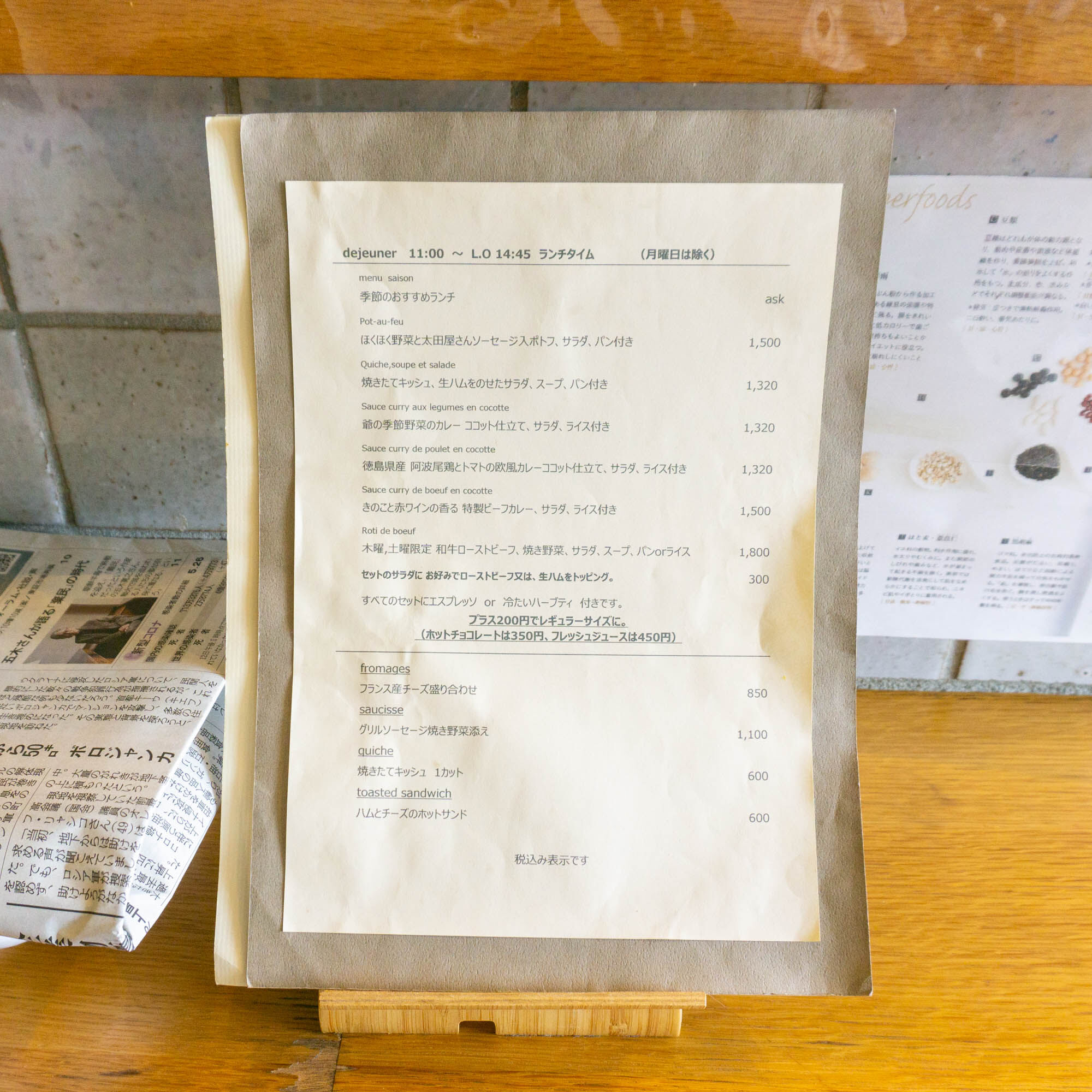 メニューの隣には新聞も置いてありました。