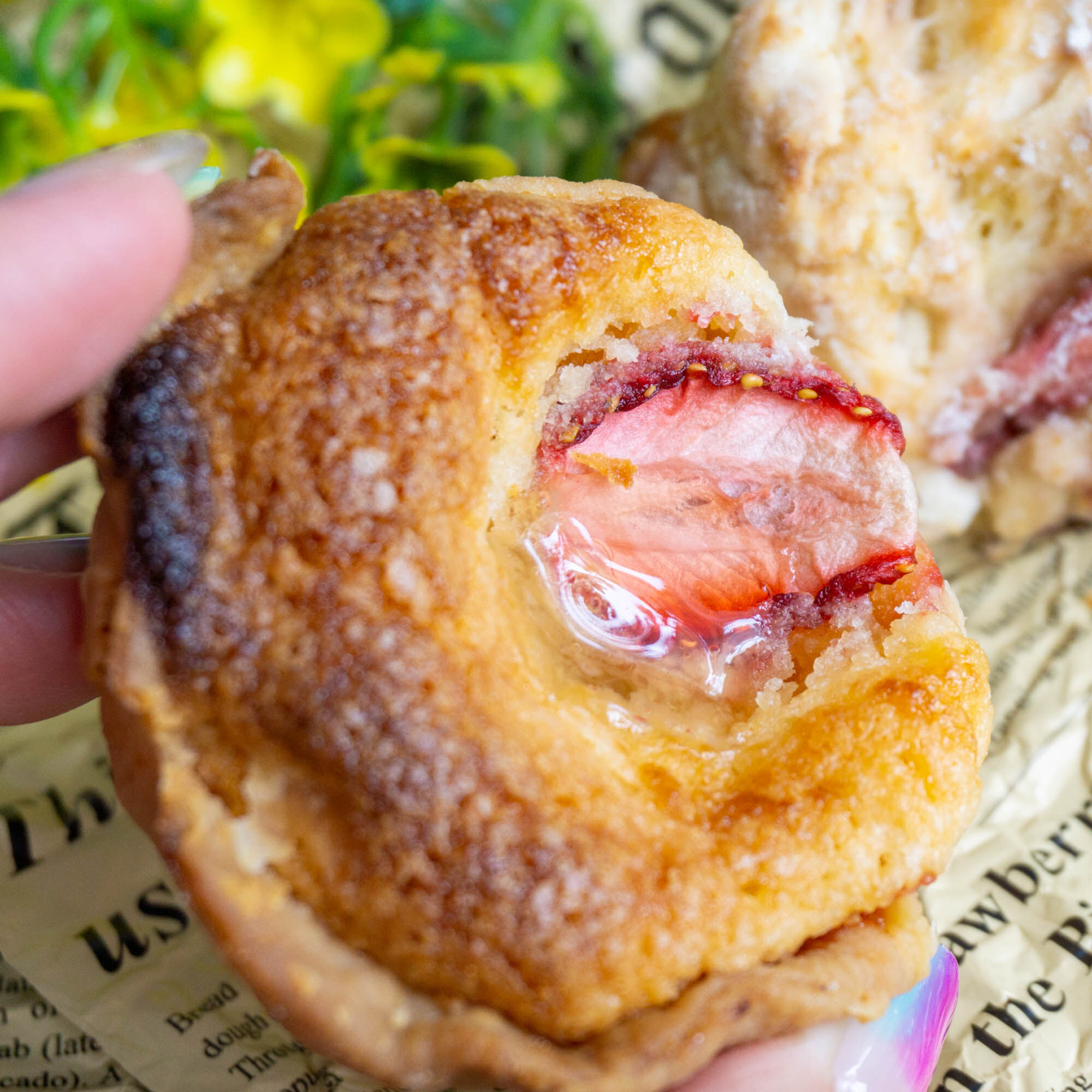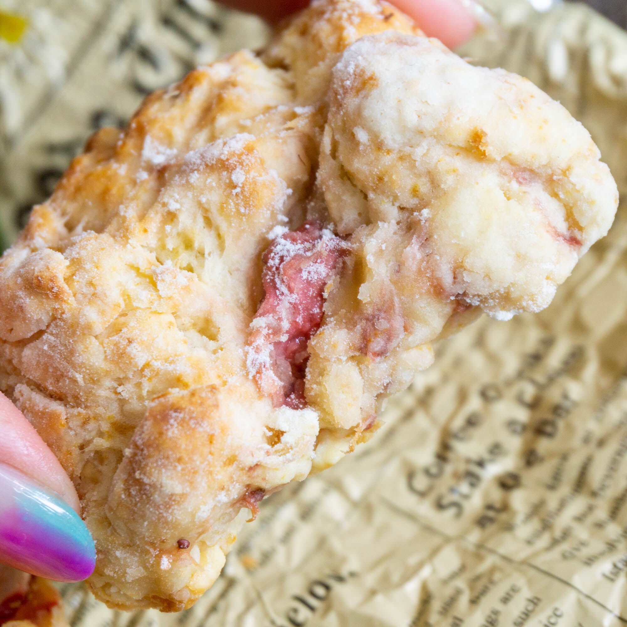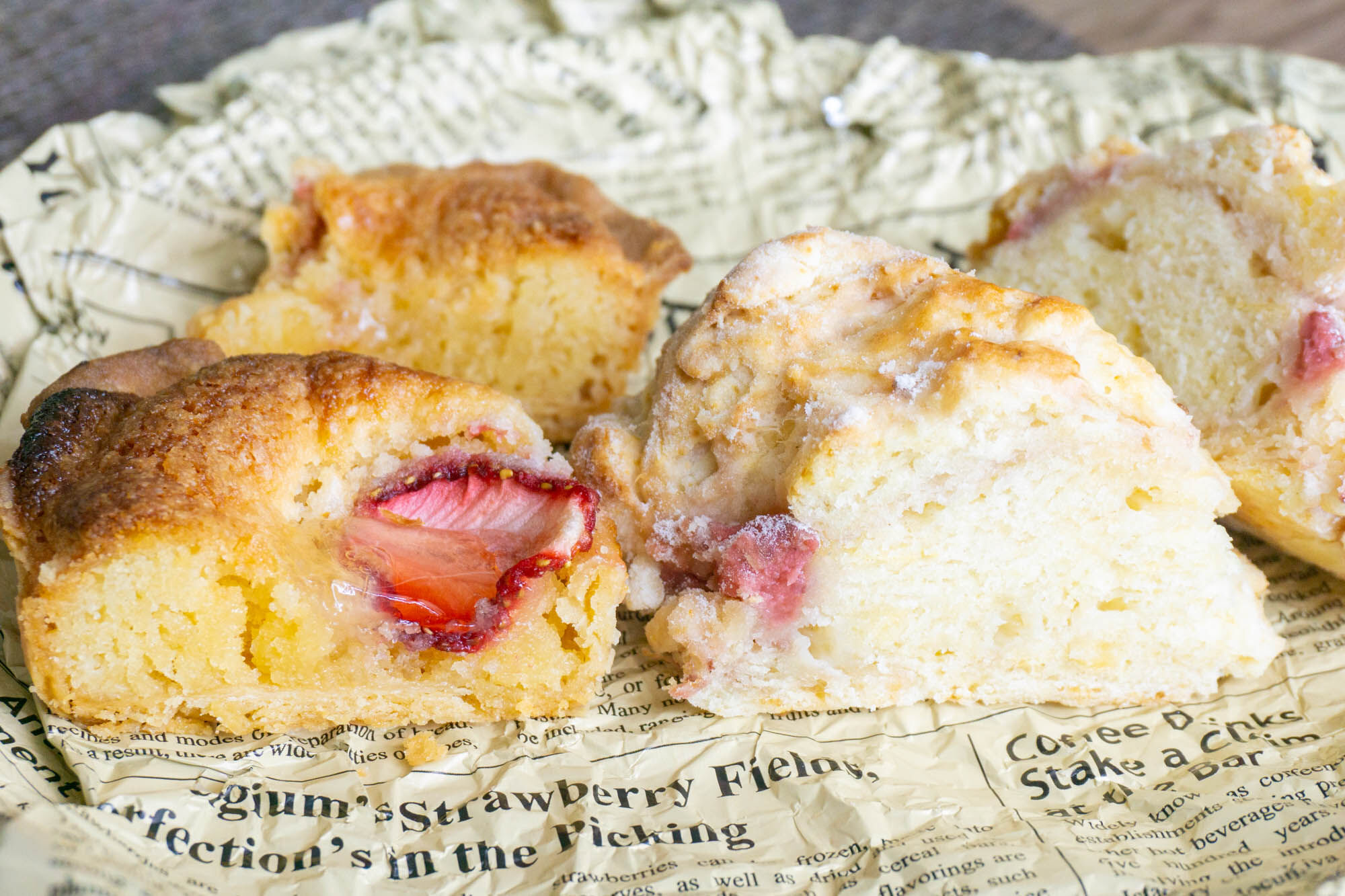 いちごのスコーンもアップにすると、中の生地がみっちりしているのが分かりますね。