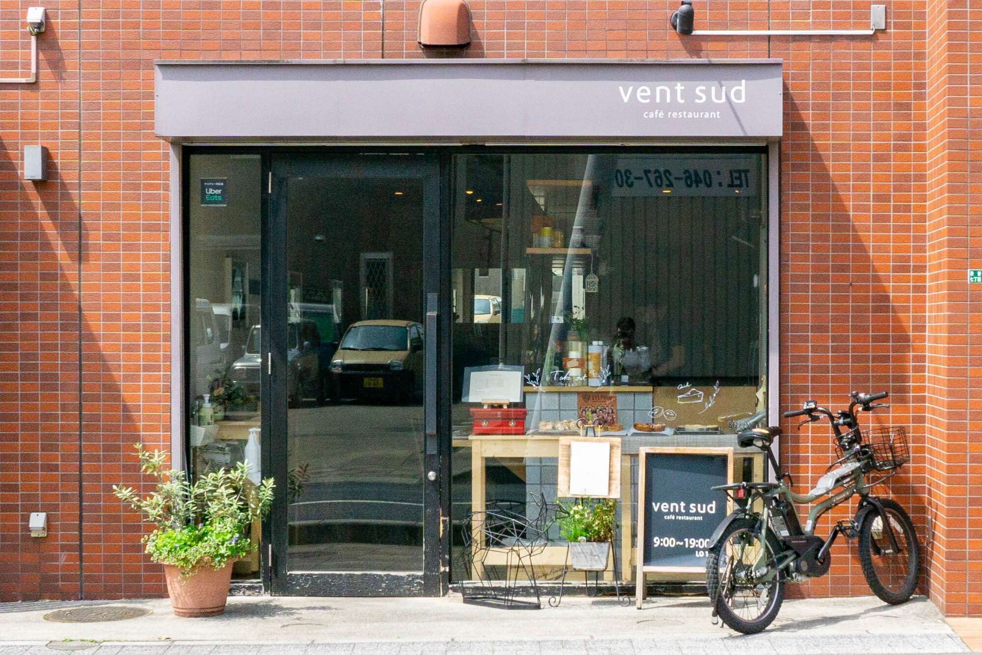 高座渋谷駅ちかくにある、ガラス張りのシンプルなお店。レンガ調のビルに入っています。