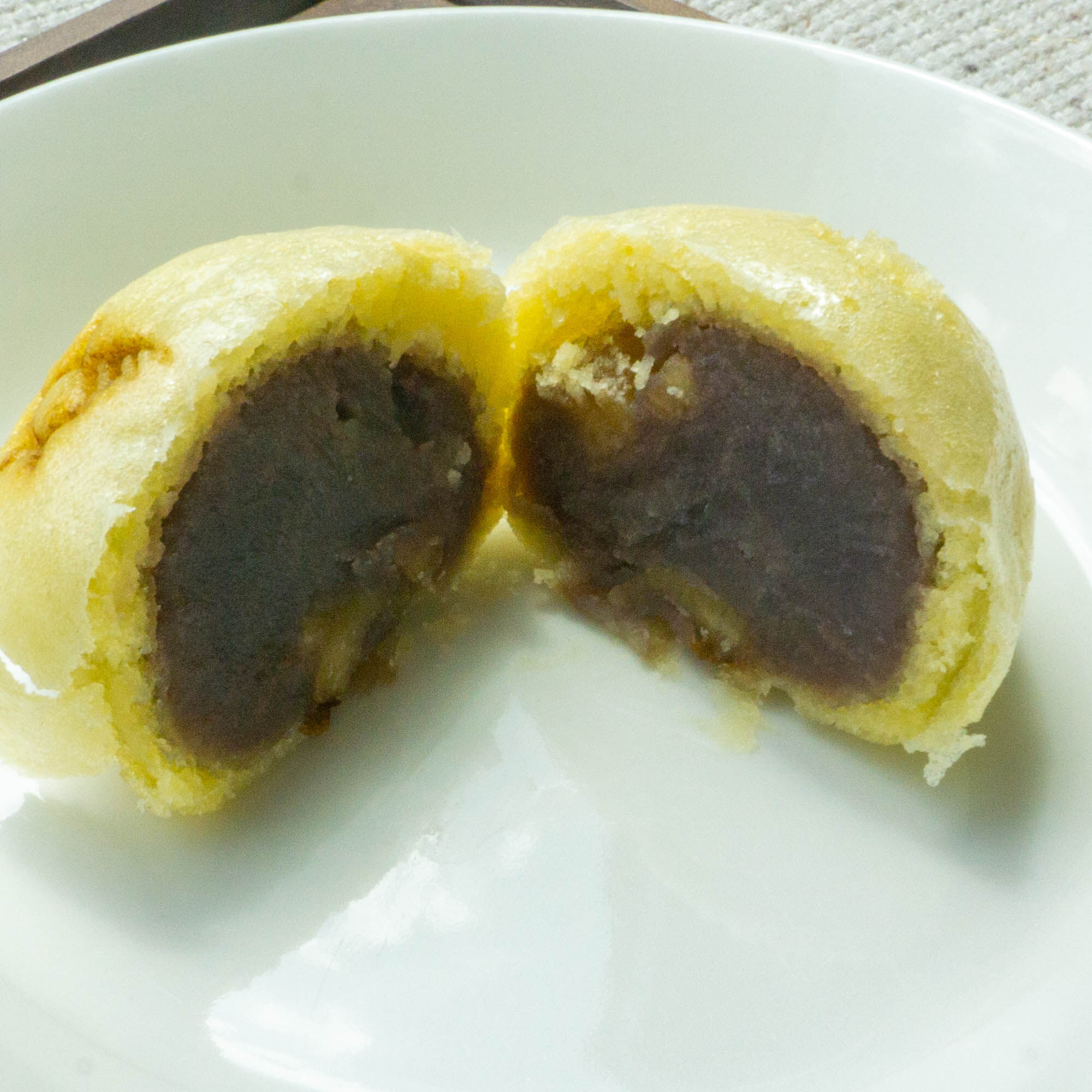 中にはこしあんとくるみが入っていて、上品な甘みとともにお口の中で滑らかに溶けていきます。