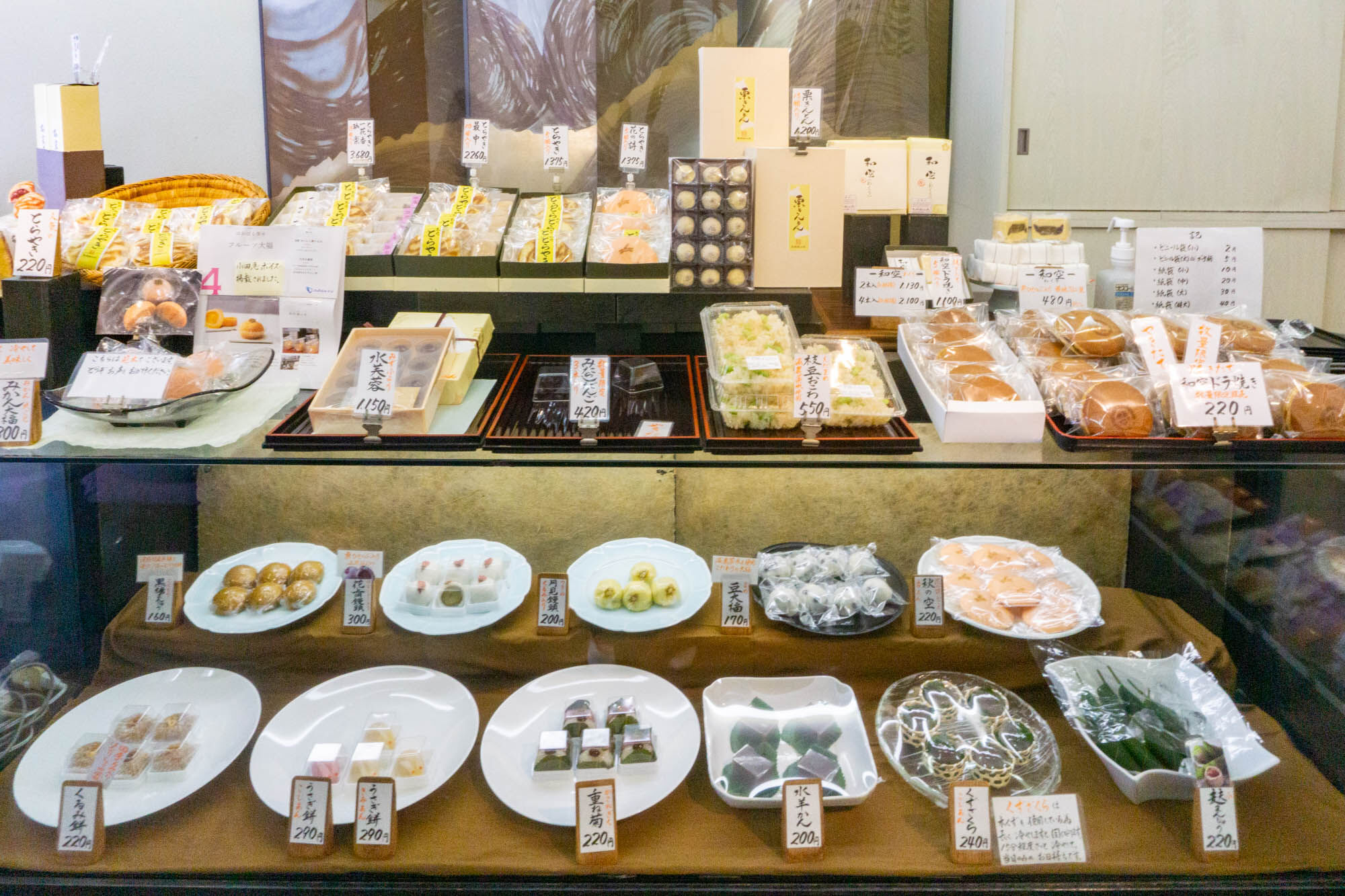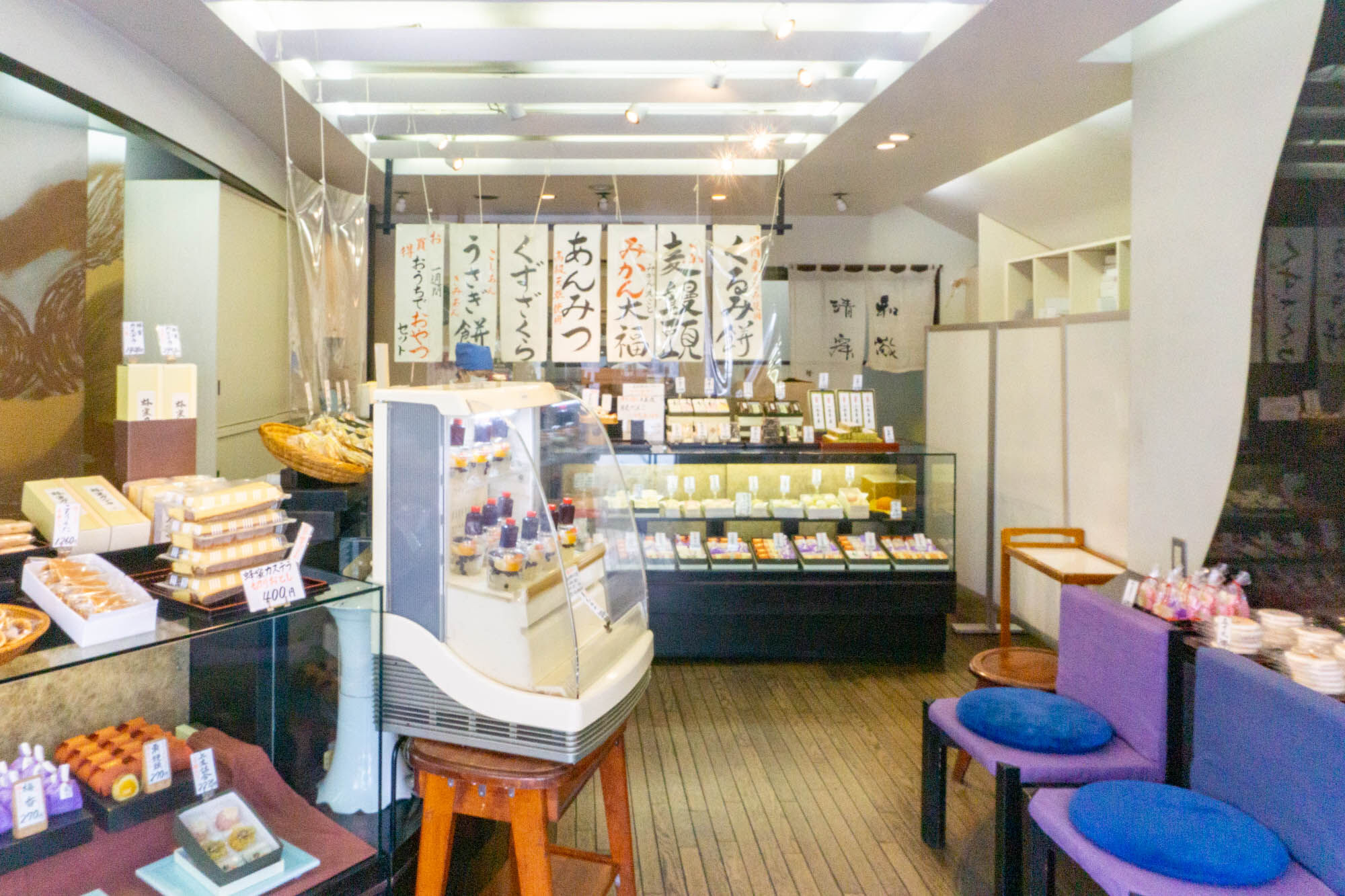 定番の和菓子や季節を感じる葛まんじゅう、水羊かんなど。