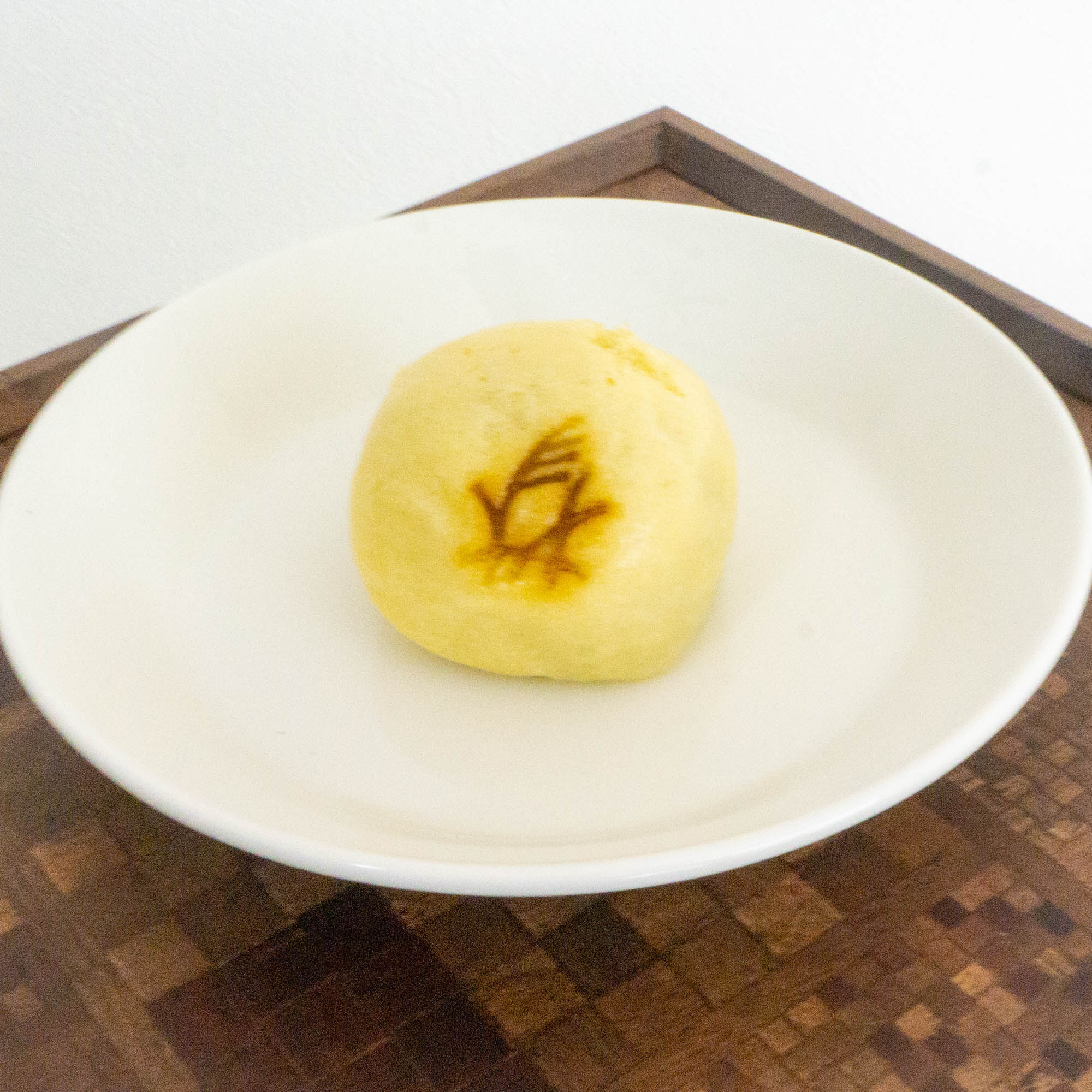月見まんじゅう。ほんのり黄色ですすきの柄が風流。