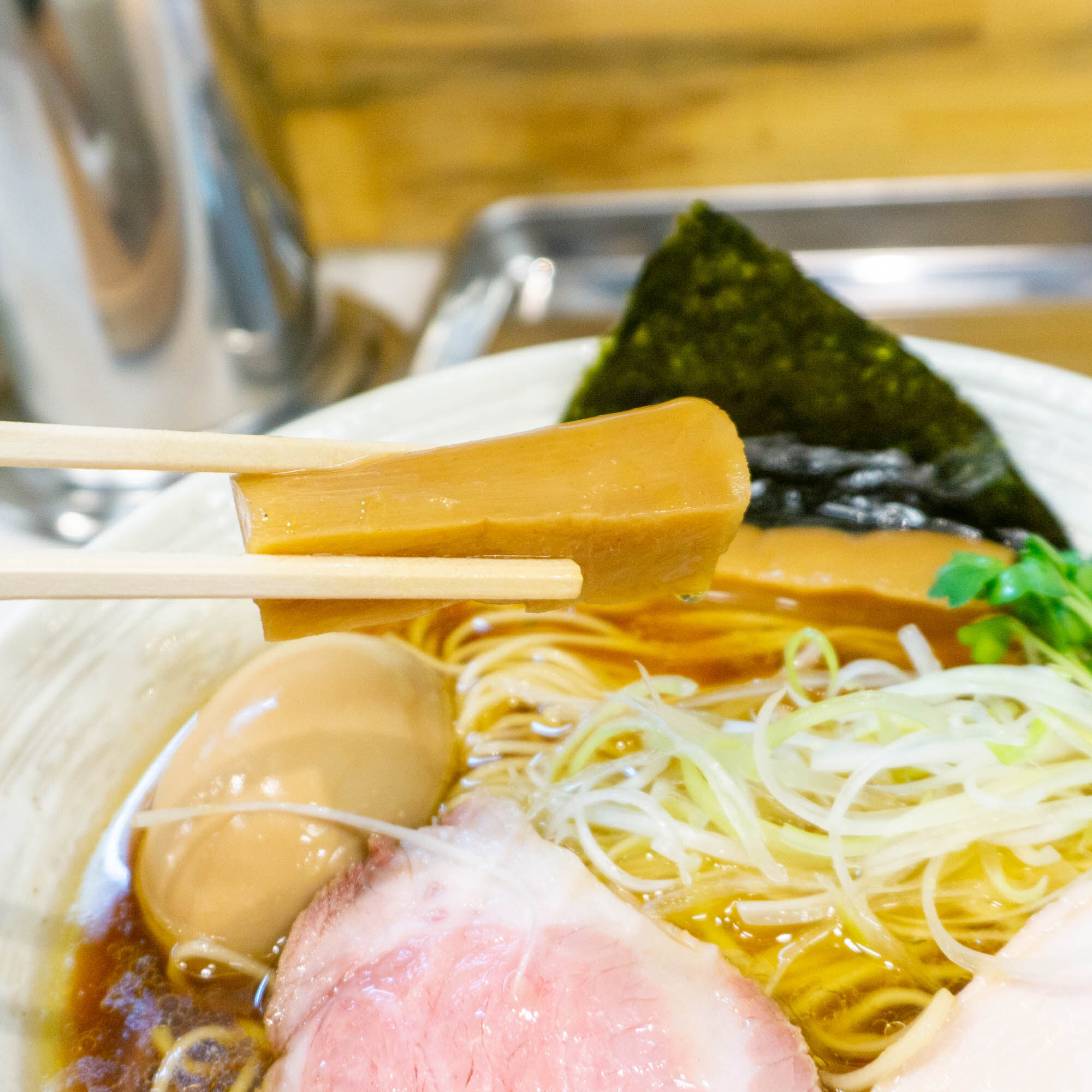 スープは淡麗系の透き通ったタイプで、醤油の味がしっかりしていて、コクがある!油もすっきりしていて淡麗系スープによく合ってます。