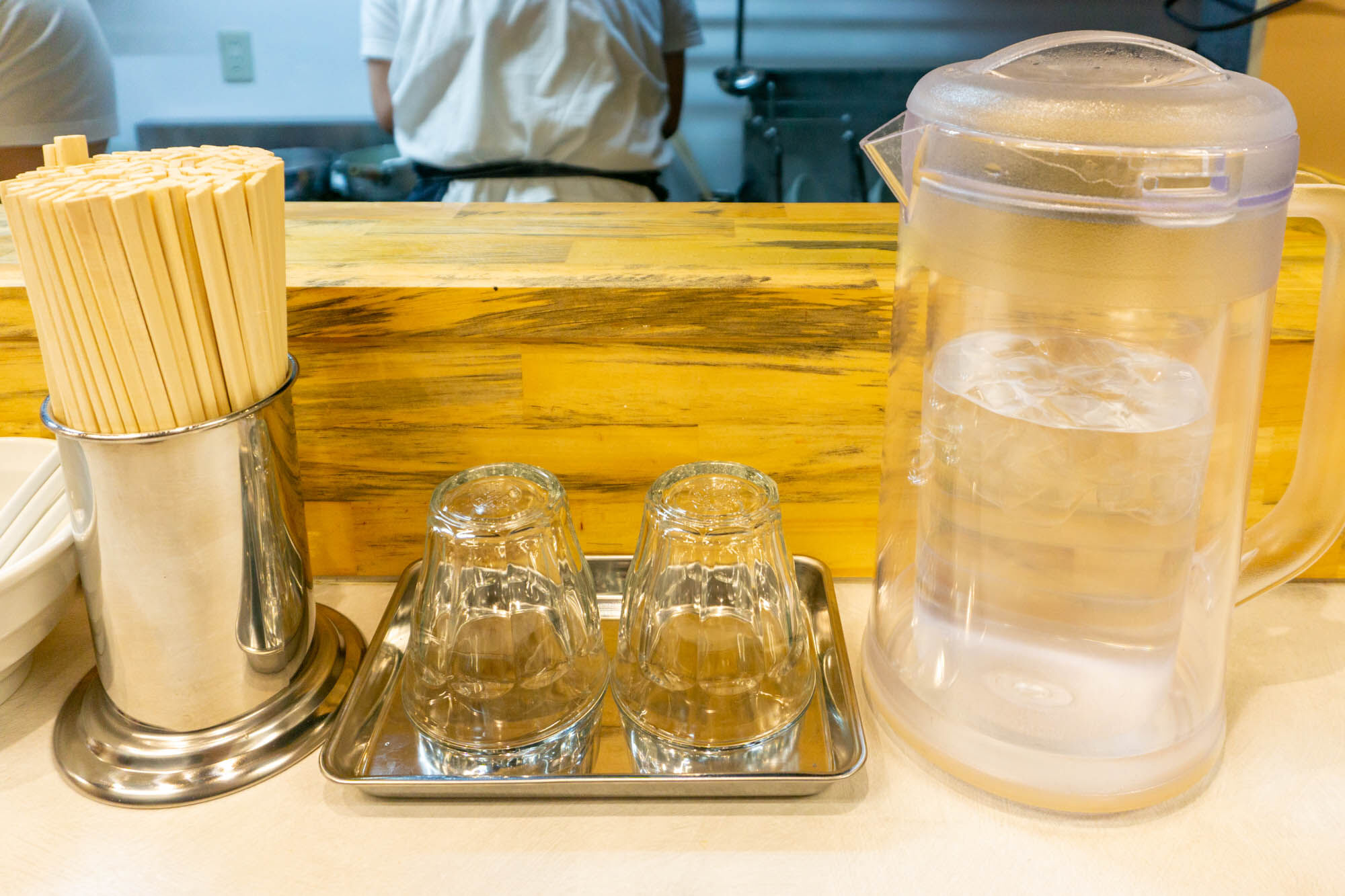 お水は席で自分で注ぐかたちで、写っていませんが、テーブル上にティッシュも設置されています。