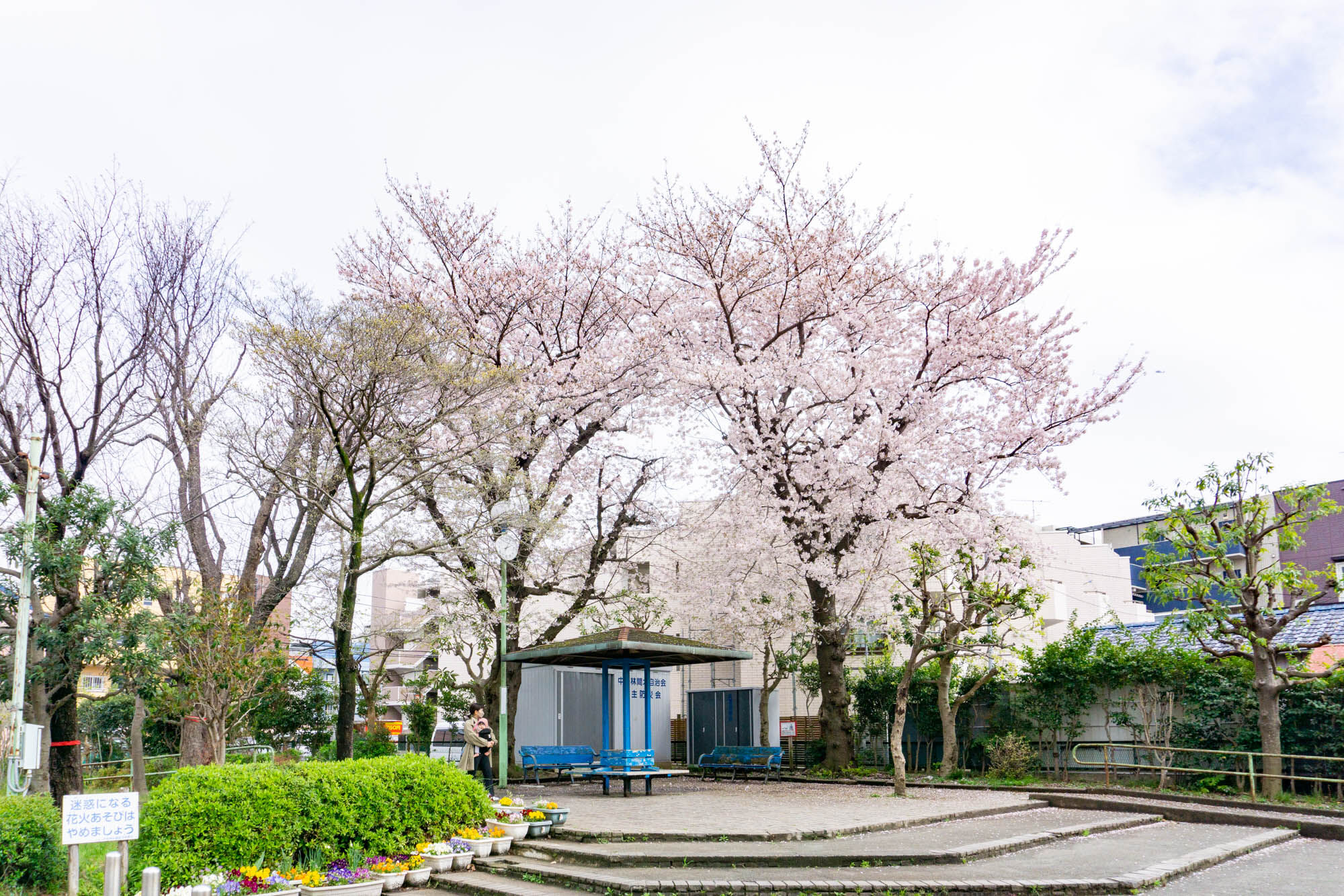 公園を囲うようにたくさんの桜の木が。