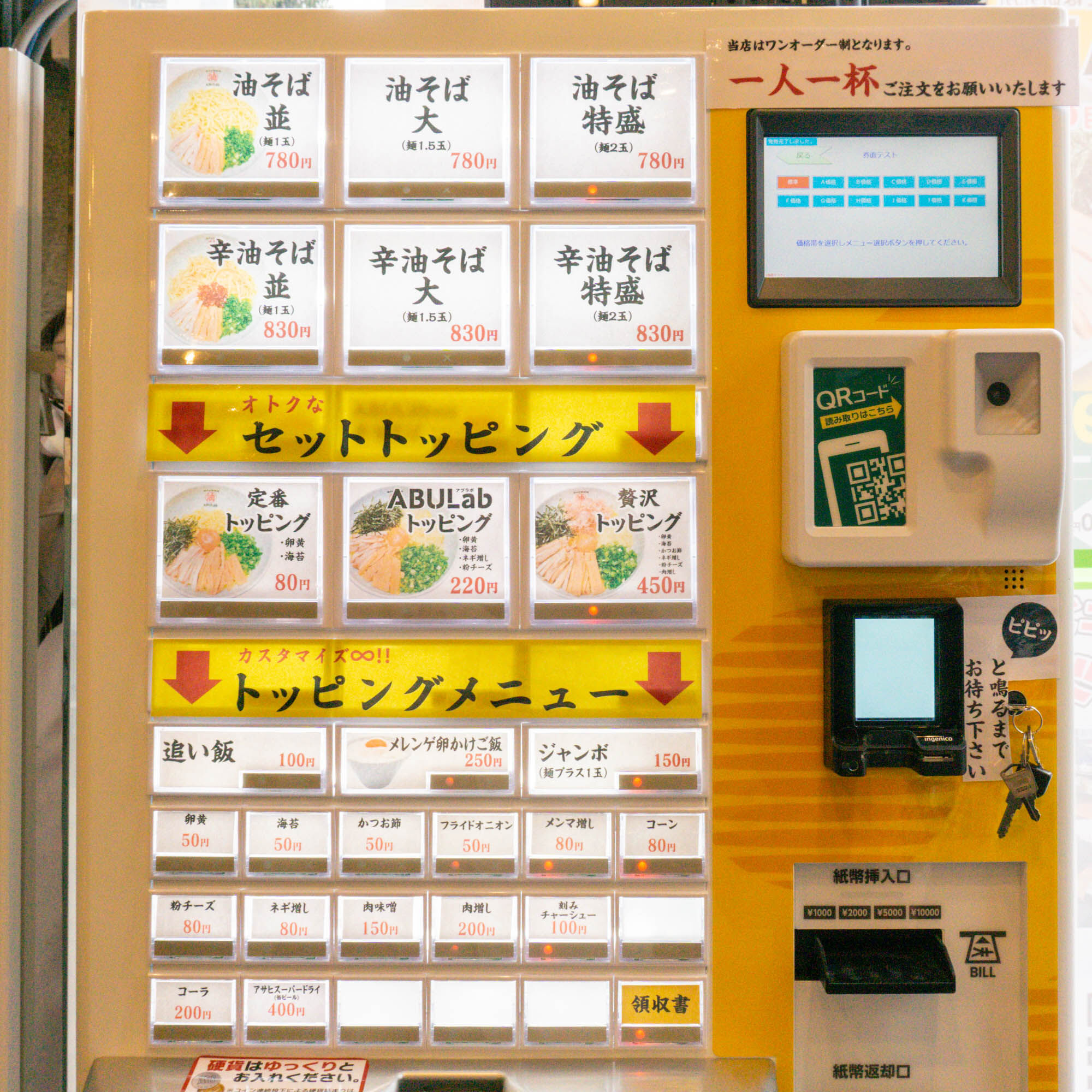 大和駅ちかくにつくってた油そば店「油そば研究所 ABULab(アブラボ)」がオープンしてる。ベルベがあったとこ
