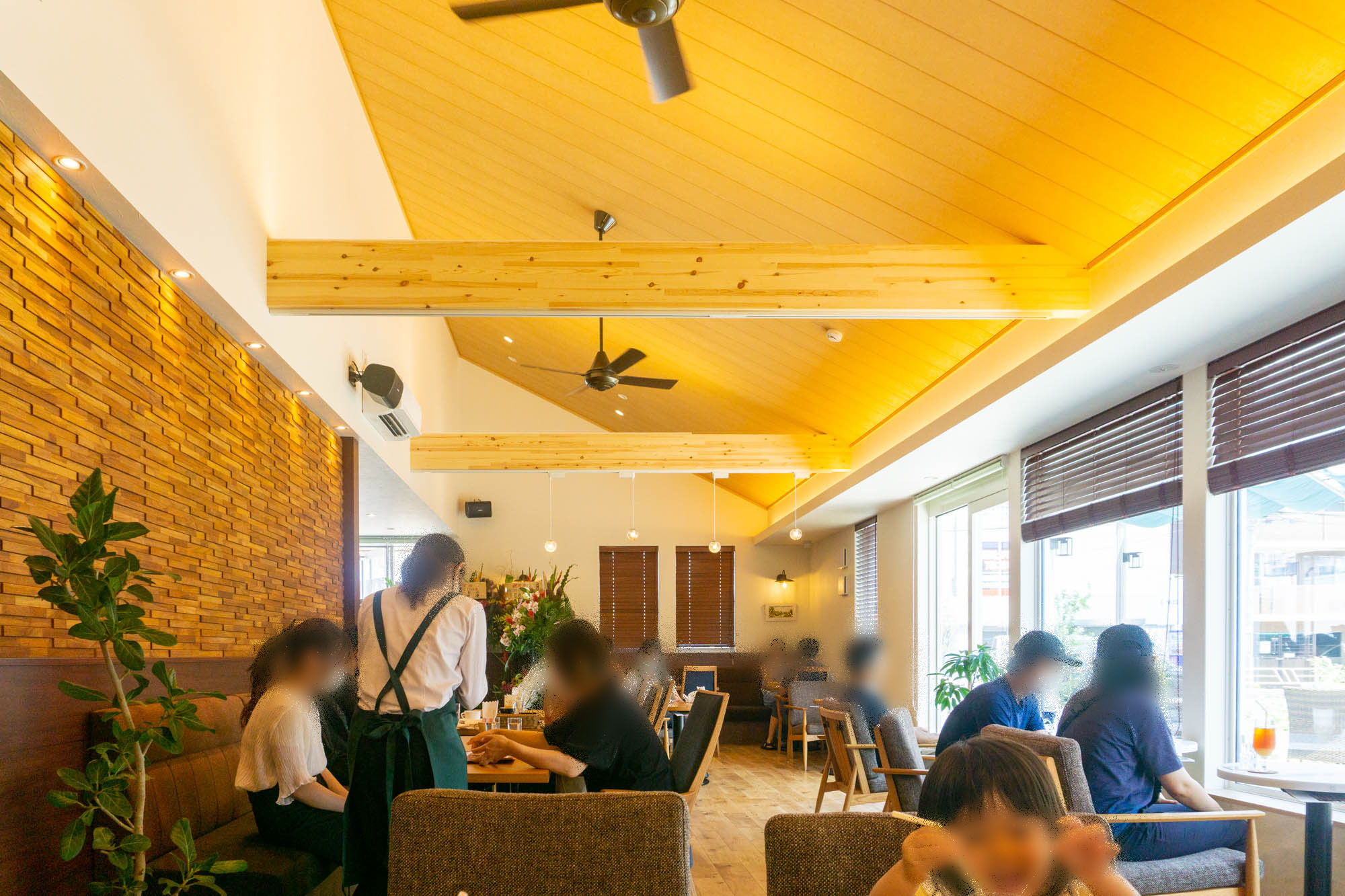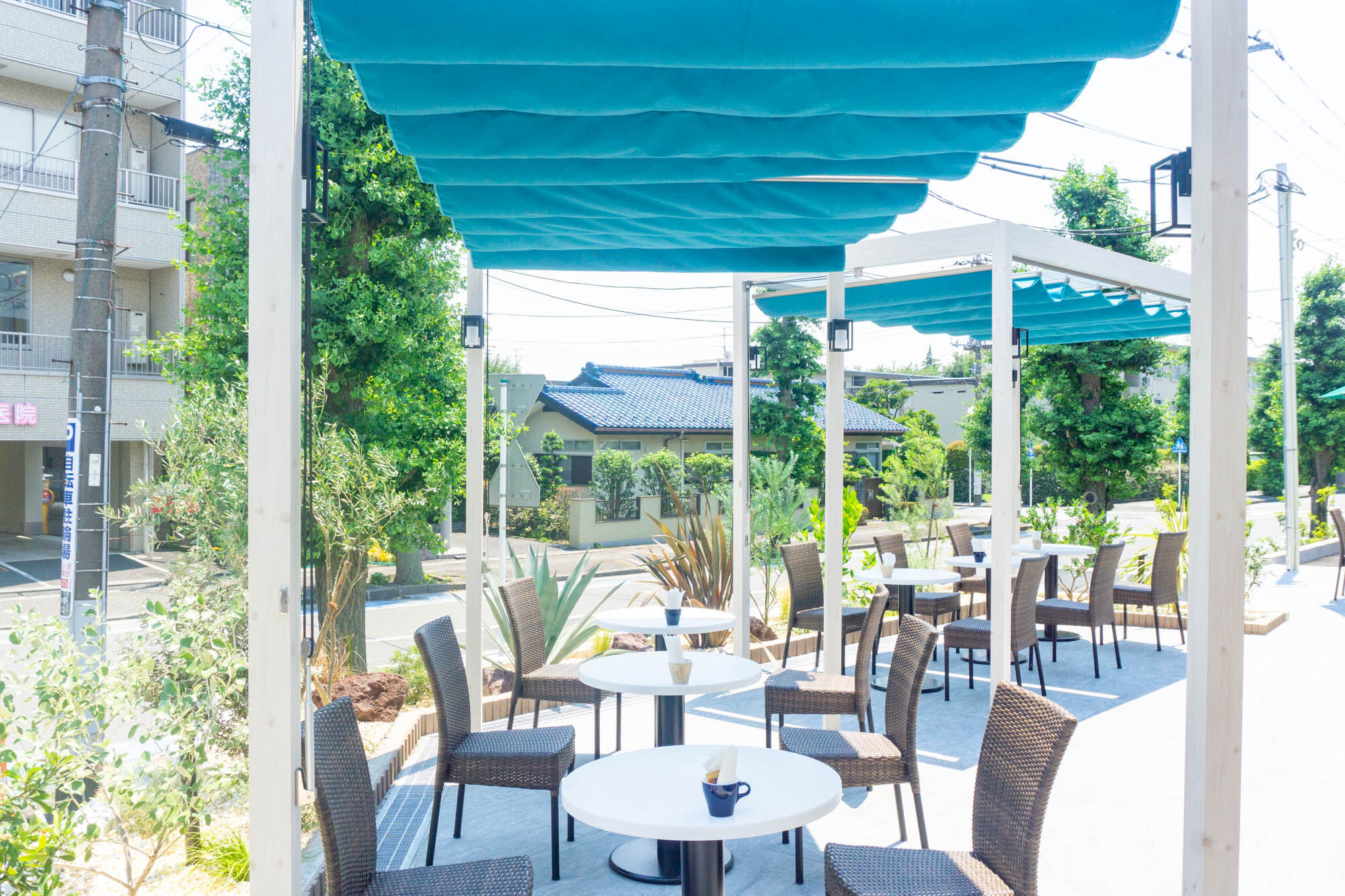 注目のテラス席はオージープランツなどのグリーンが設置され、気分はまるで外国。開放的〜!