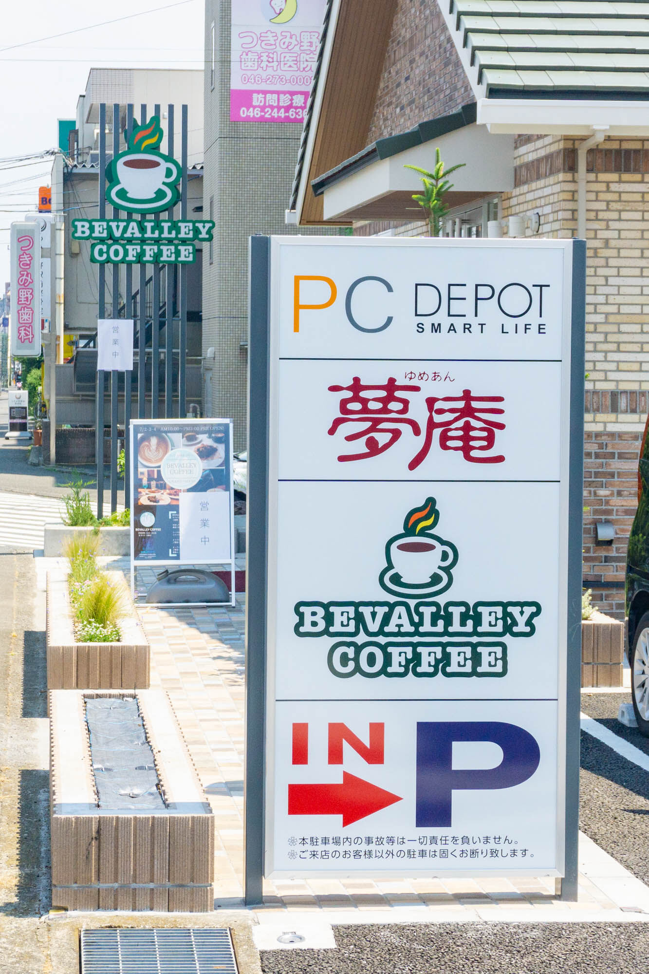 PCデポと夢庵、ビバレーコーヒーの3店舗共同駐車場として41台の駐車スペースがありました。