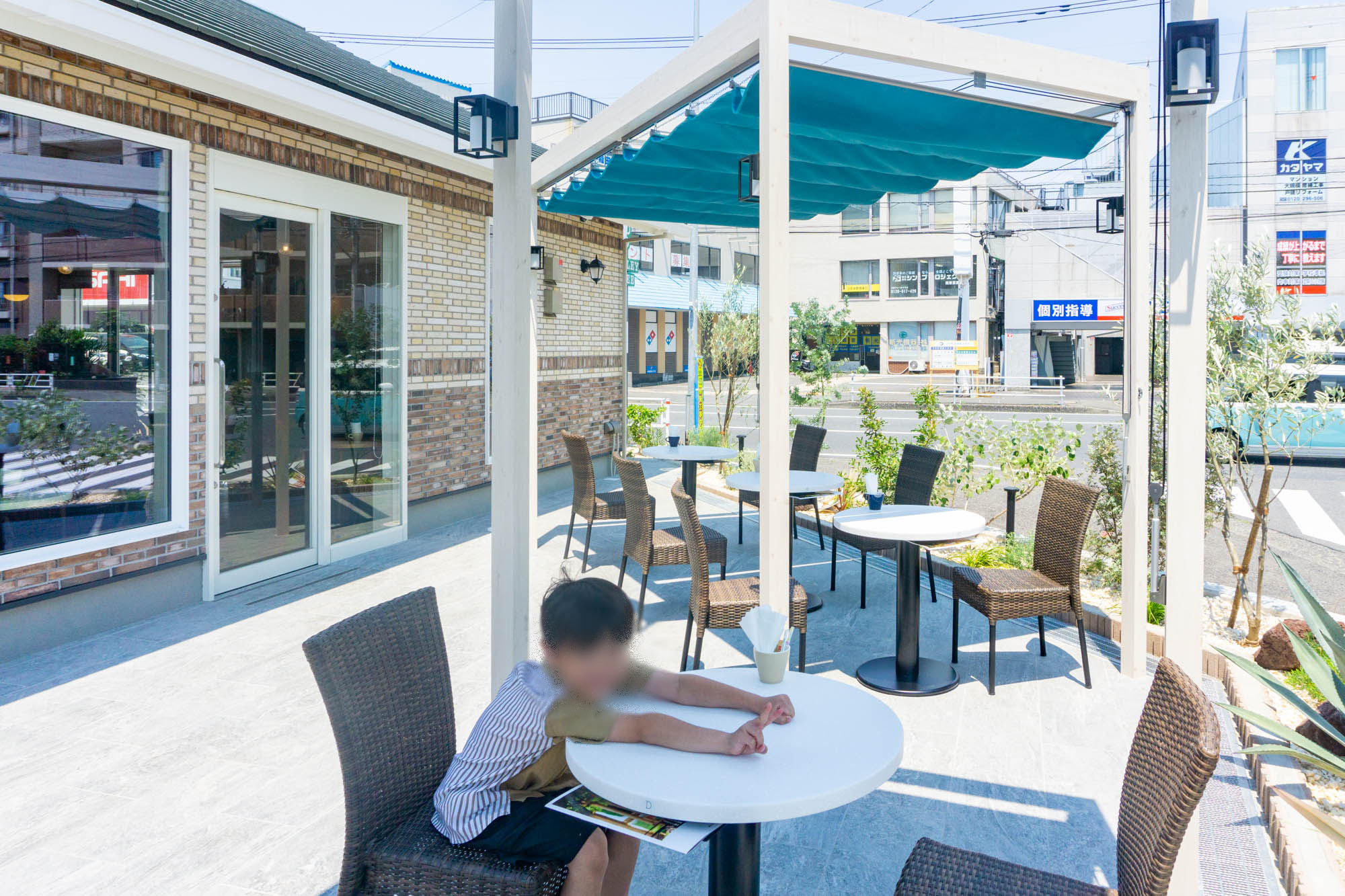(テラス席にテンション上がっている息子)