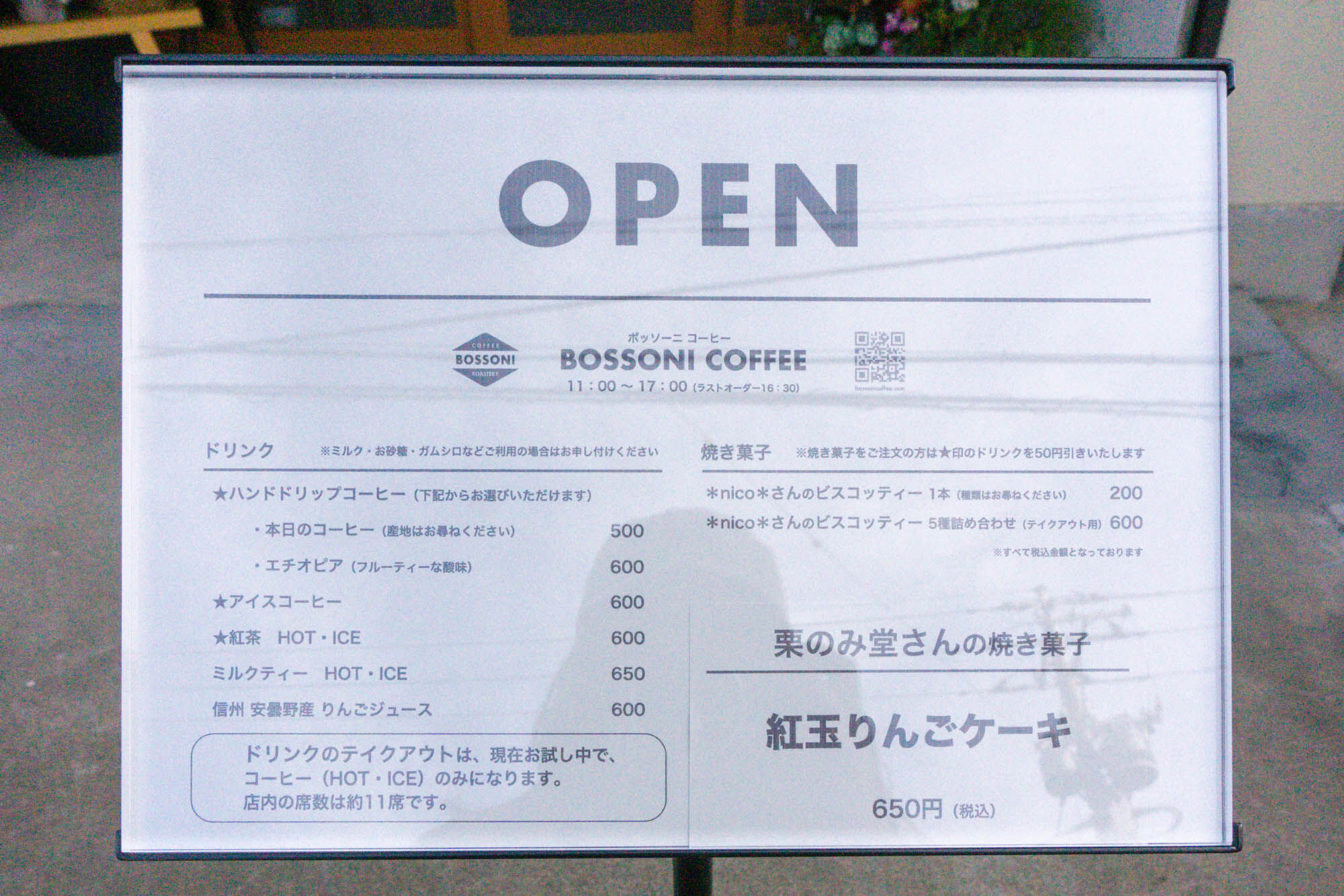 店舗前にはメニュー看板も置いてありました。
