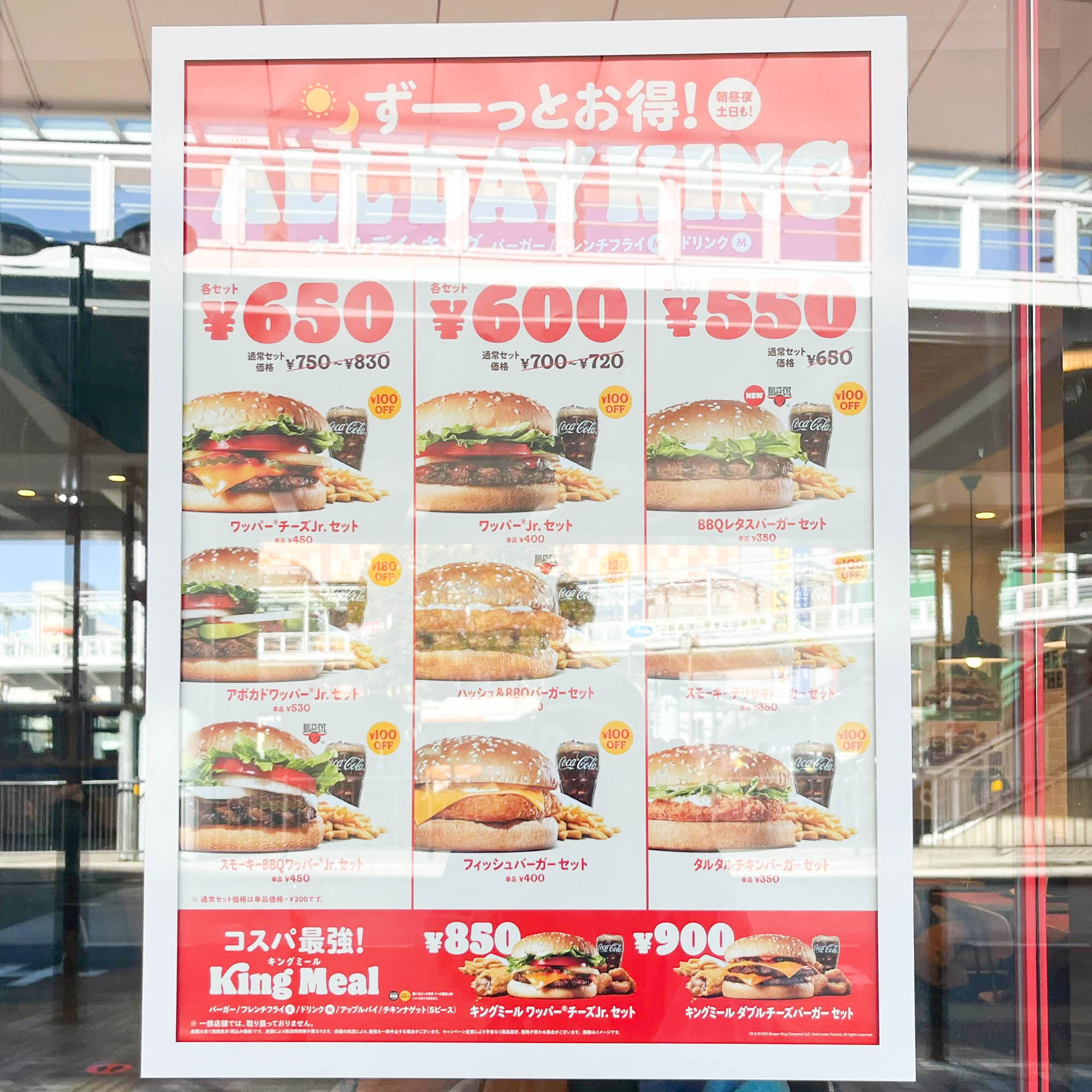 「バーガーキング」は、ハンバーガーやサイドメニューなどを提供している世界で2番目に大きなハンバーガーチェーン。市内には「イオン大和店」や「イオンモール大和店」があります(→公式サイト)。