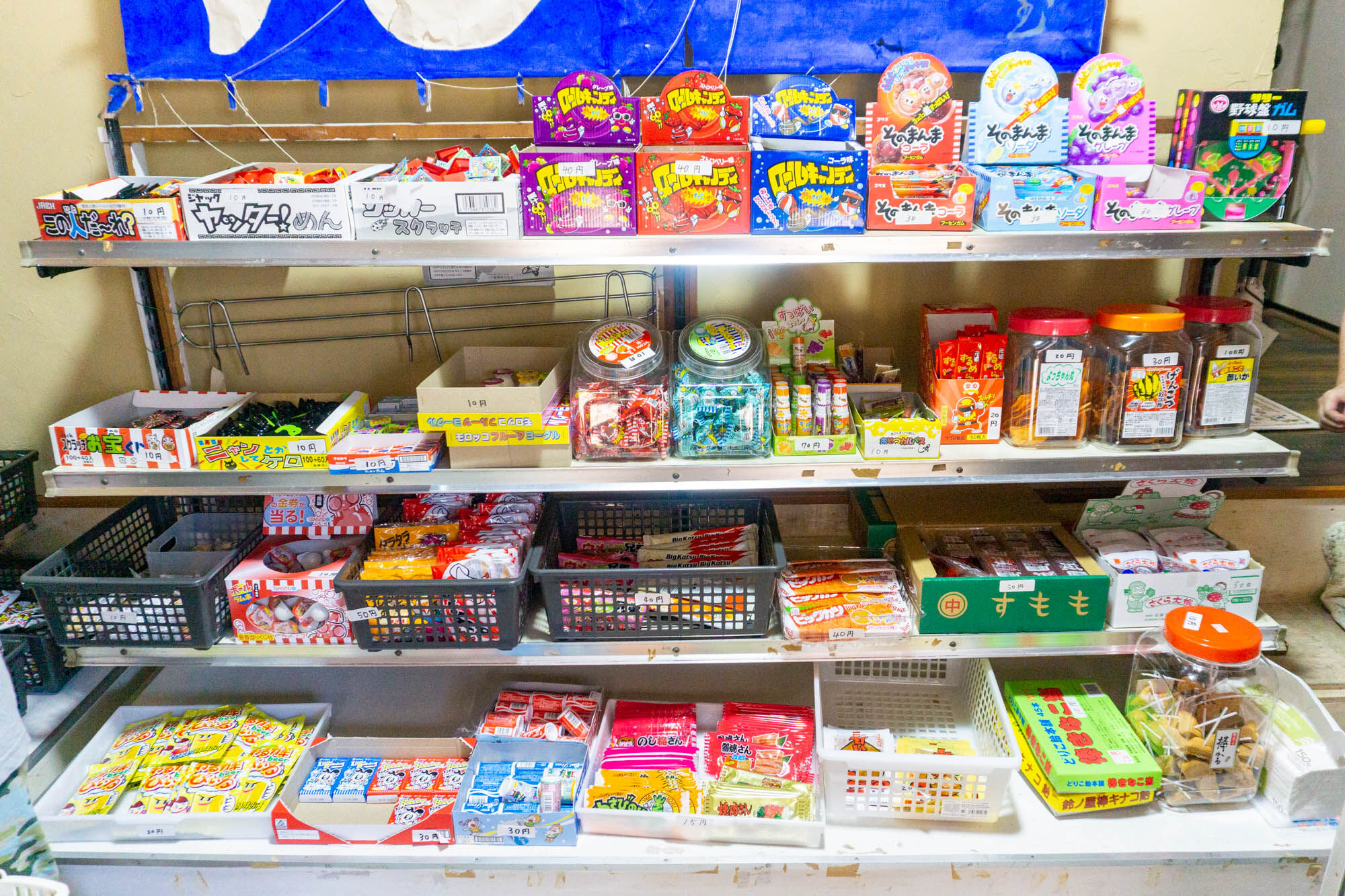 こっちにも駄菓子。夏休み期間のため店内にはたくさんの子供たちが。