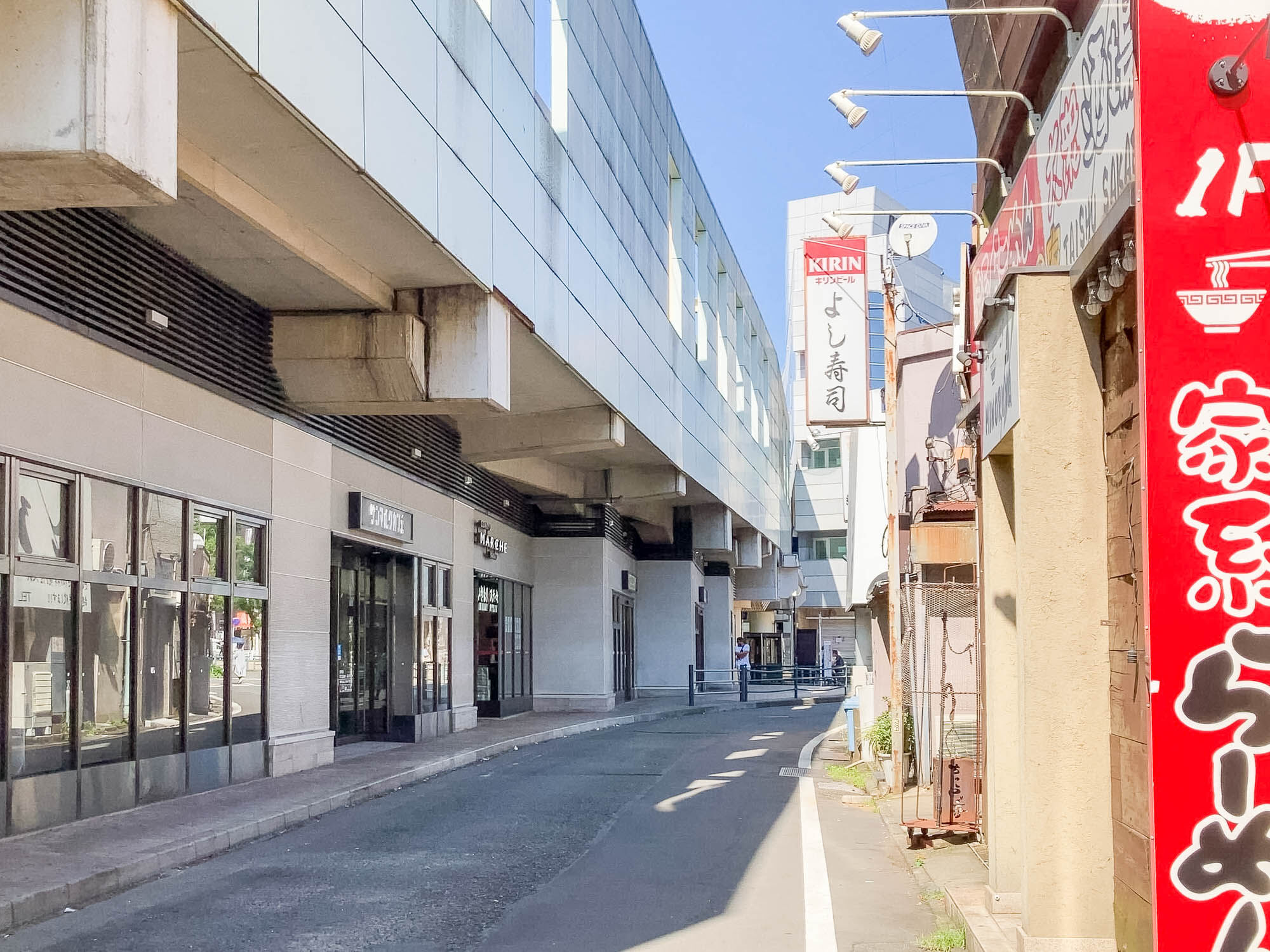 移動販売車を背にして右ななめ前には大和駅が。