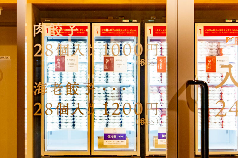 店内はいわゆる無人餃子販売所とおなじで、お金を投入して冷凍庫から餃子をもっていくかたちです。