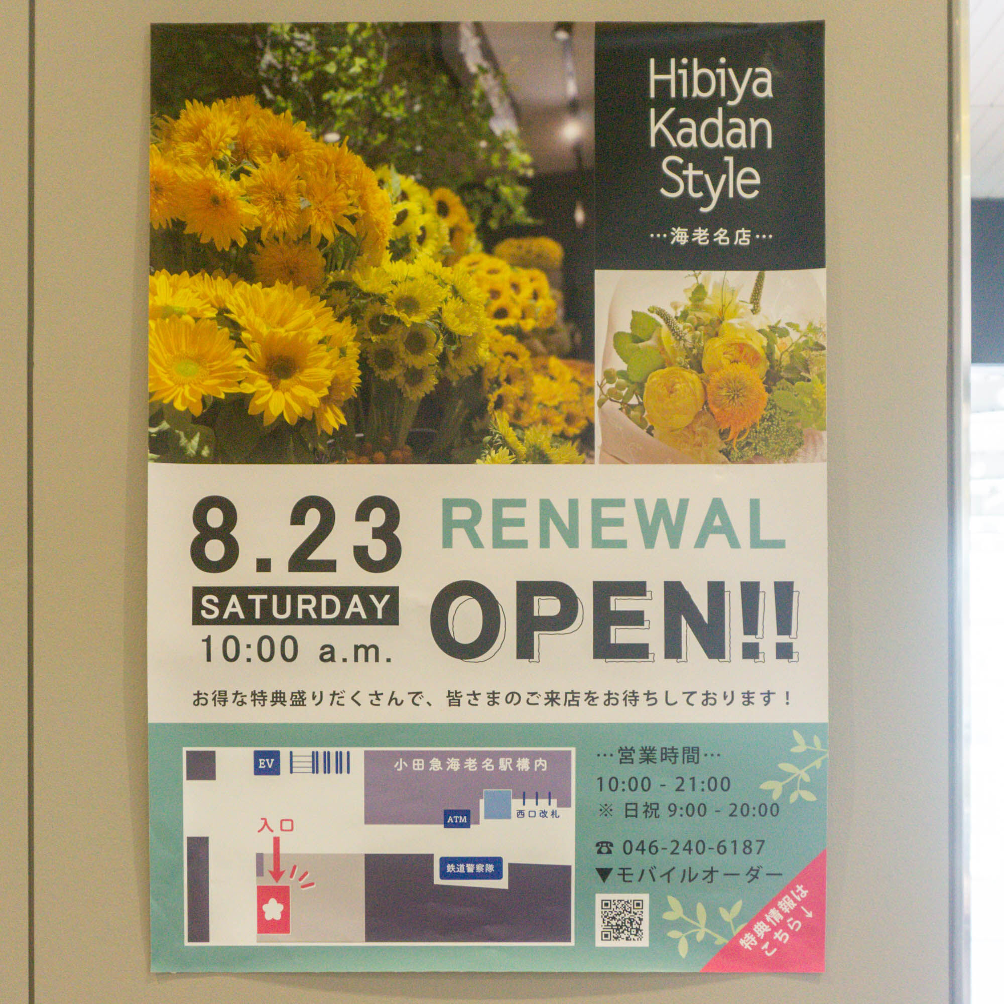 海老名駅チカに「Hibiya-Kadan Style」って花屋ができてる。相鉄線海老名駅2階改札口となり