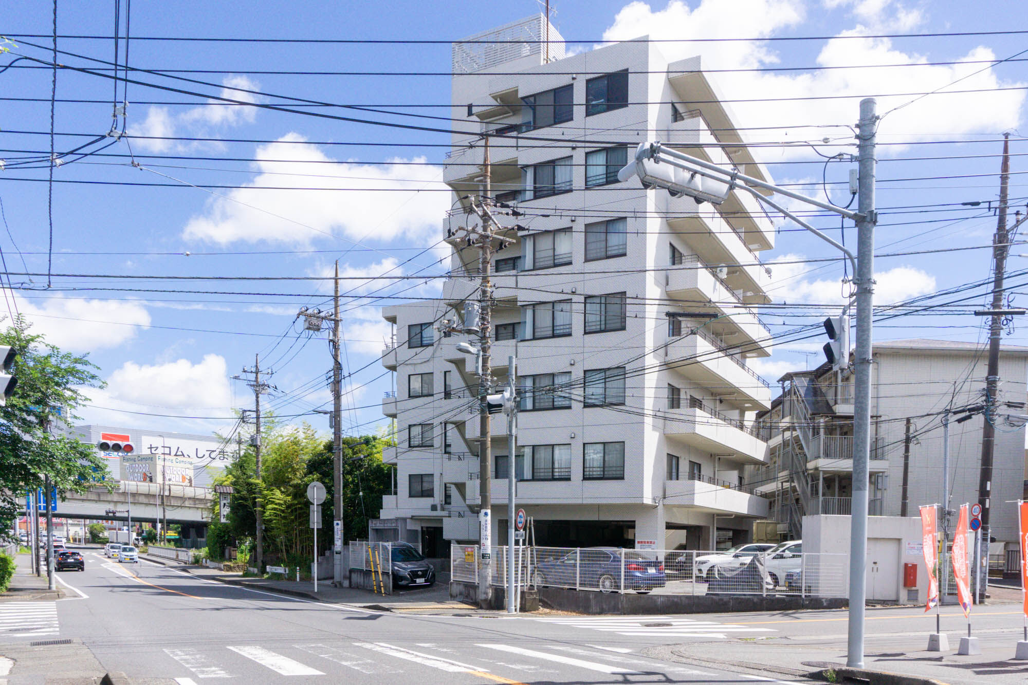 反対方向にいくと、自動車販売店「アルファー」や「ホワイトハウス キャンパー 横浜」などが。