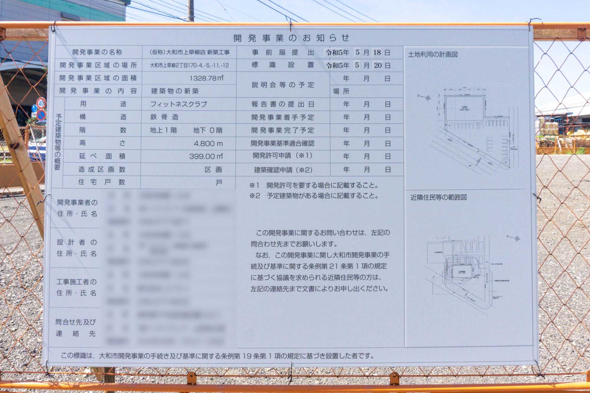 現地の工事板によると、「(仮称)大和市上草柳店」とのこと。何のフィットネスクラブかは分かりませんでしたがチェーン店かもしれません。