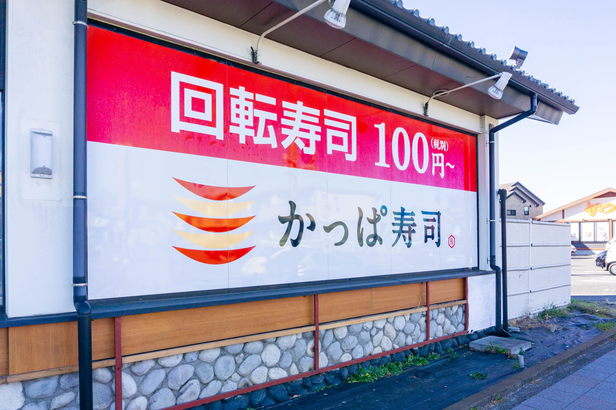 撮影時にはすでに閉店しており、看板の「かっぱ寿司」の文字がテープで消されていました。