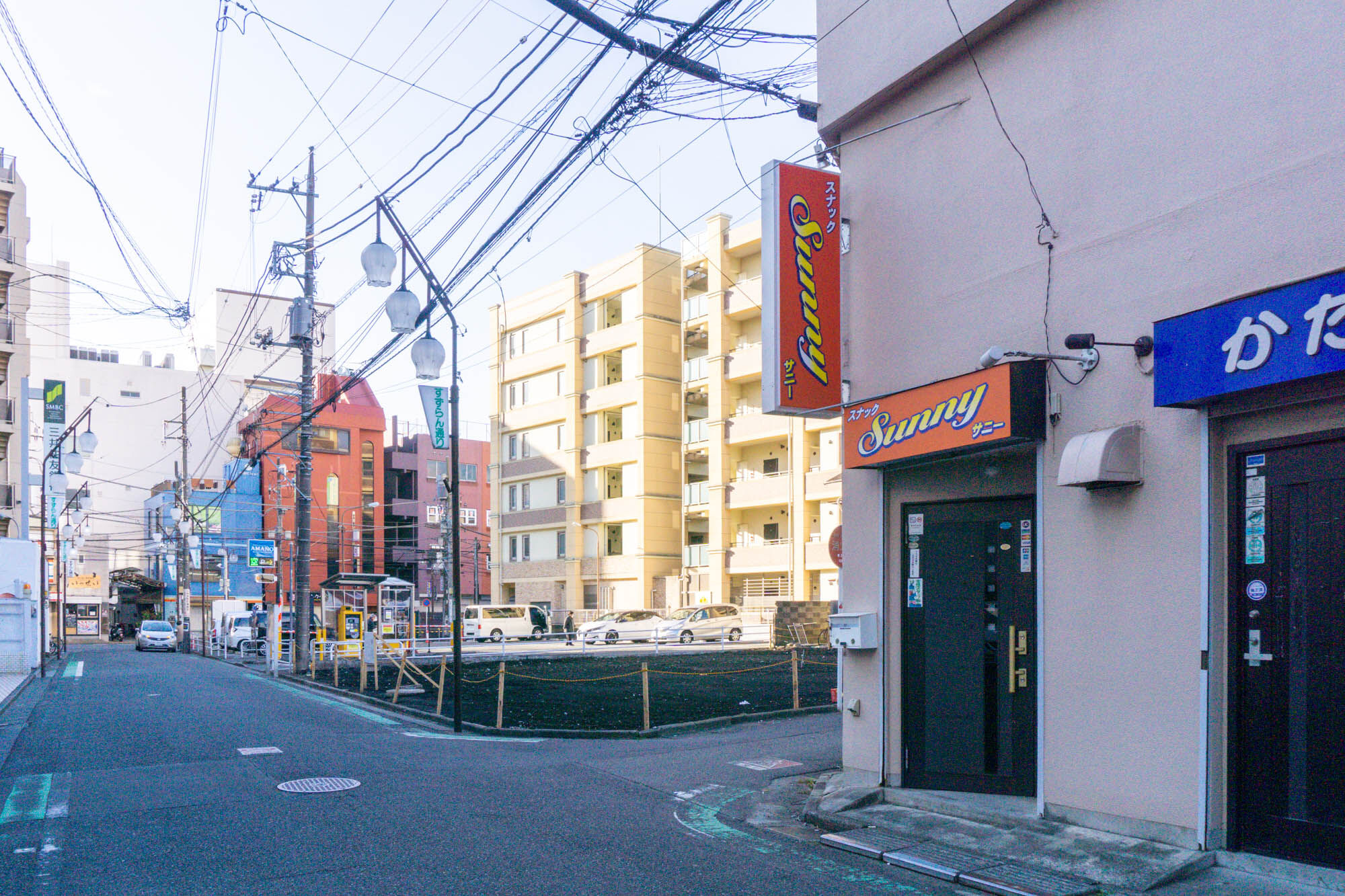 こっちにいくと、以前「立ち呑み処 きんぎょ」があった更地があり「大和東パーキング」も。その先には居酒屋「いっせい」があります。大和駅方面もこっち側。