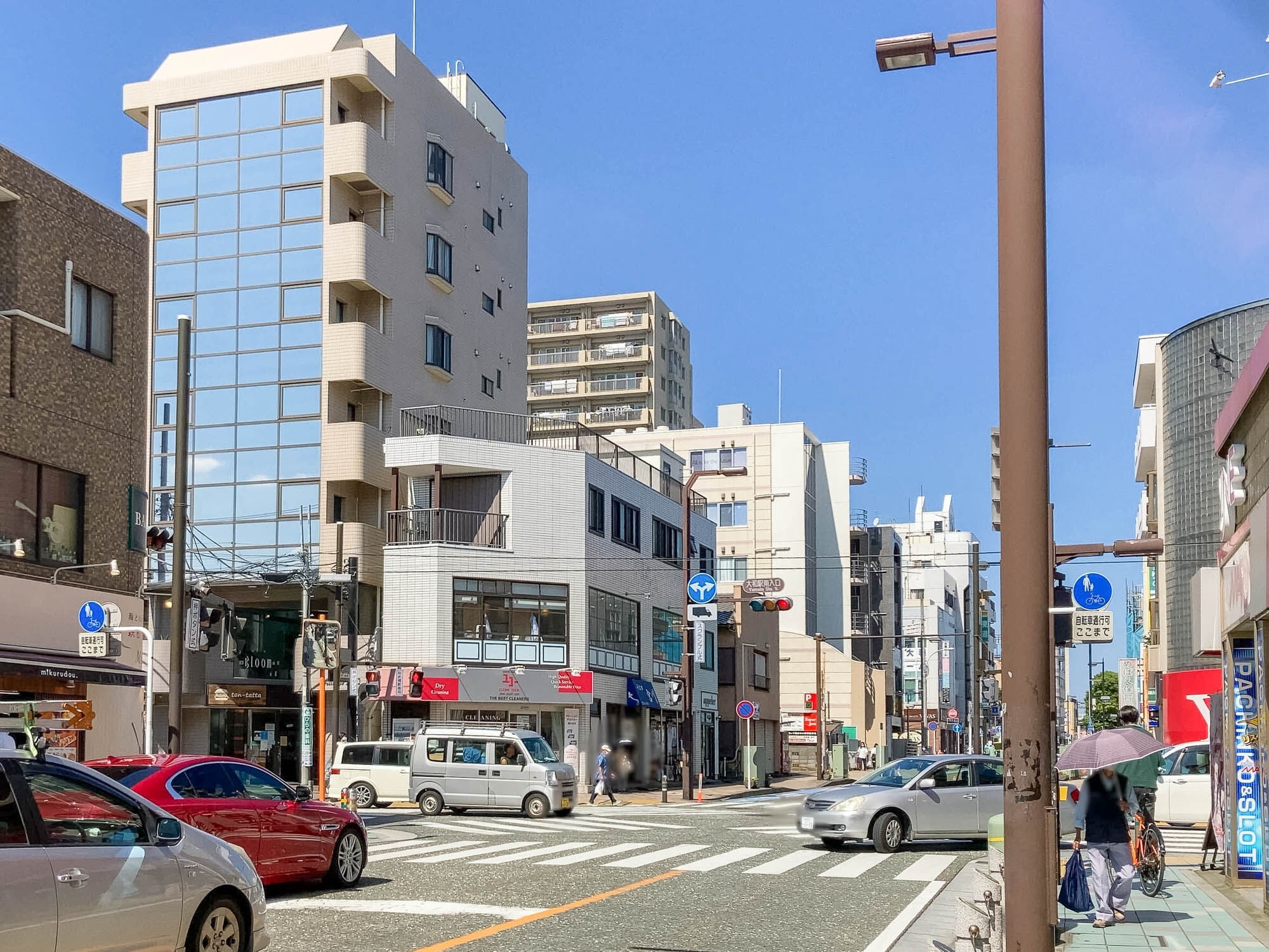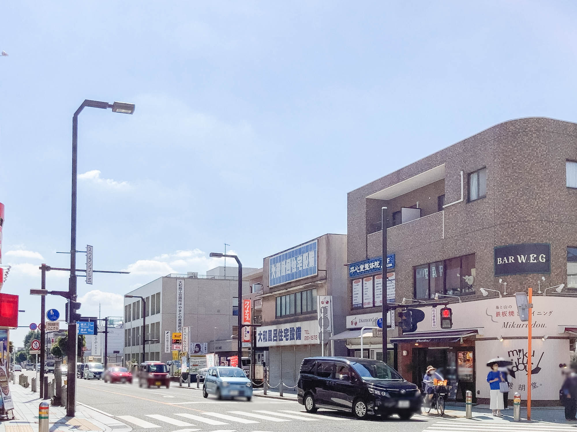 反対方向にいくと、十字路があり信号を渡ると「ユコー 大和店」や「ソフトバンク大和」、大和駅方面もこっち側。