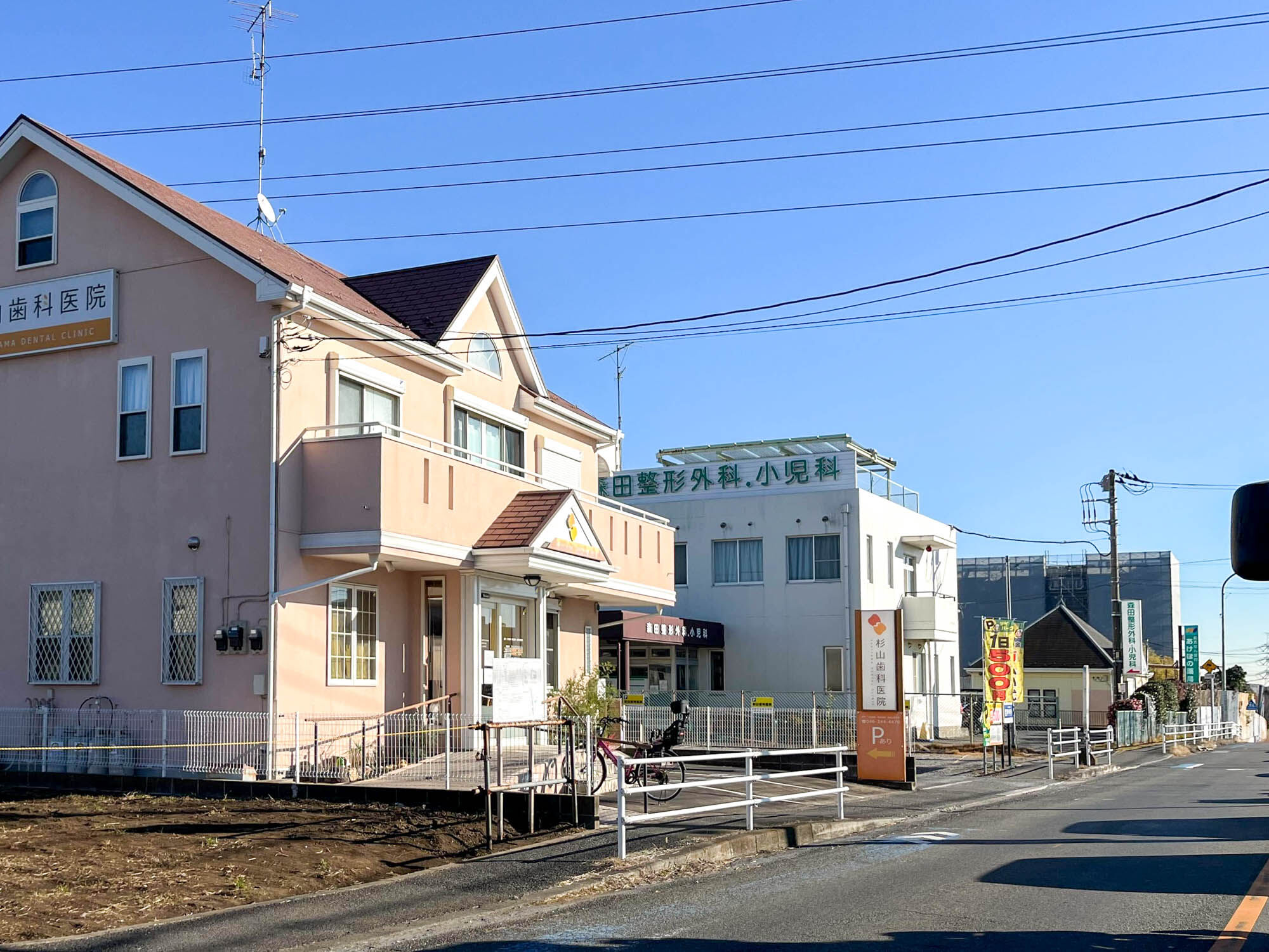 反対方向にいくと、、「杉山歯科医院」や「あけぼの薬局 大和店」などがあります。