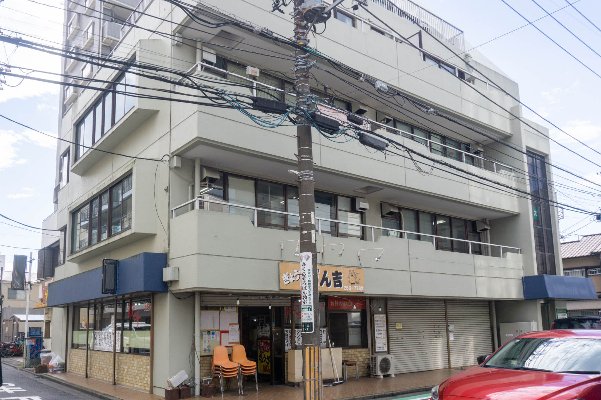 中央の中華料理店「ぽん吉」が閉店してる