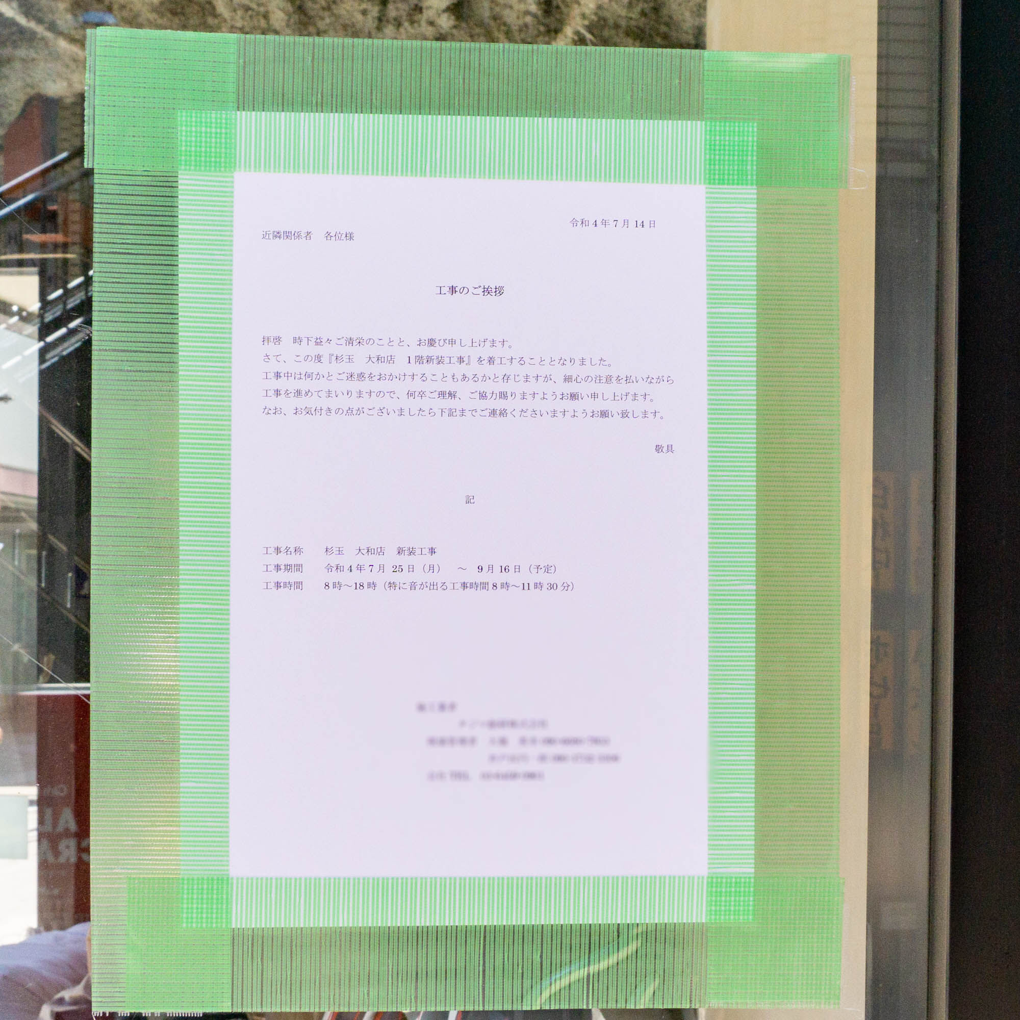 店舗の窓ガラスには貼紙も。「杉玉 大和店 1階 新装工事」と記載されていました。
