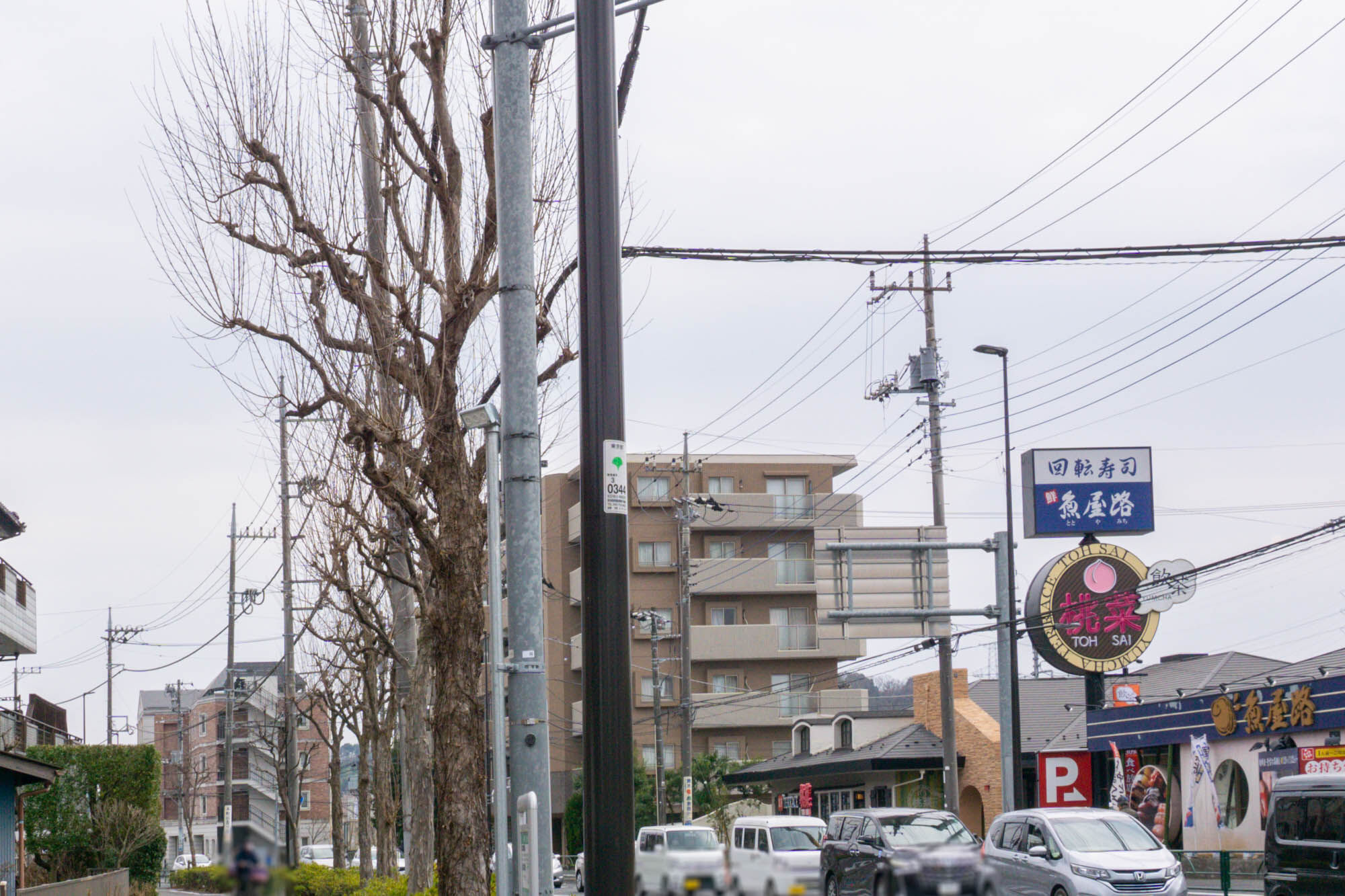 反対方向にいくと、「ファミリーマート 鶴川駅西店」や鶴川駅が。小田急小田原線です。