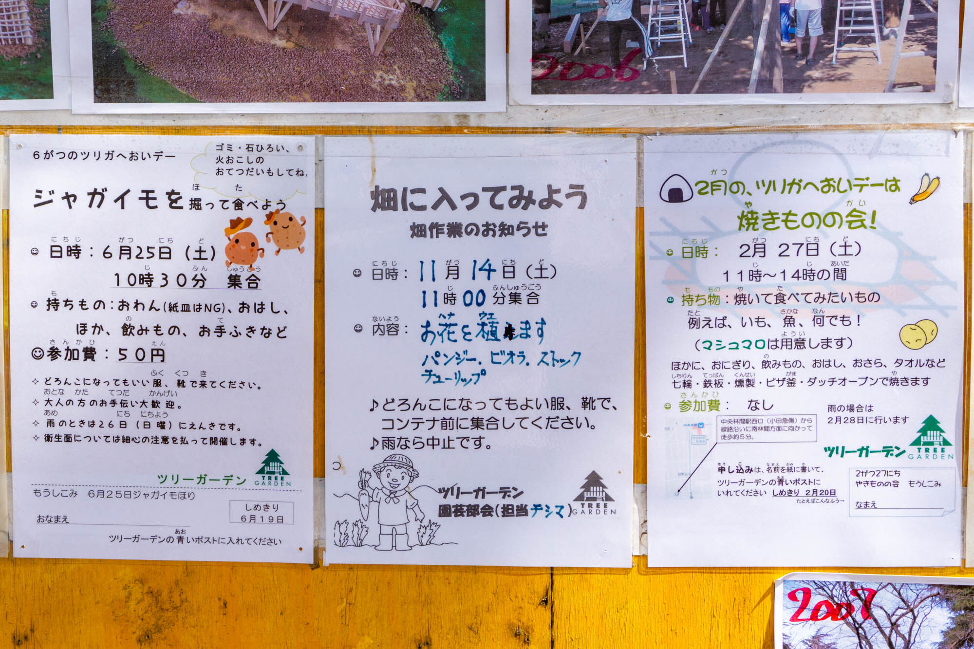 小屋には今までのツリーガーデンの歴史というか想い出のイベントや写真がたくさん。皆さん眺めながら想い出話をされたり。
