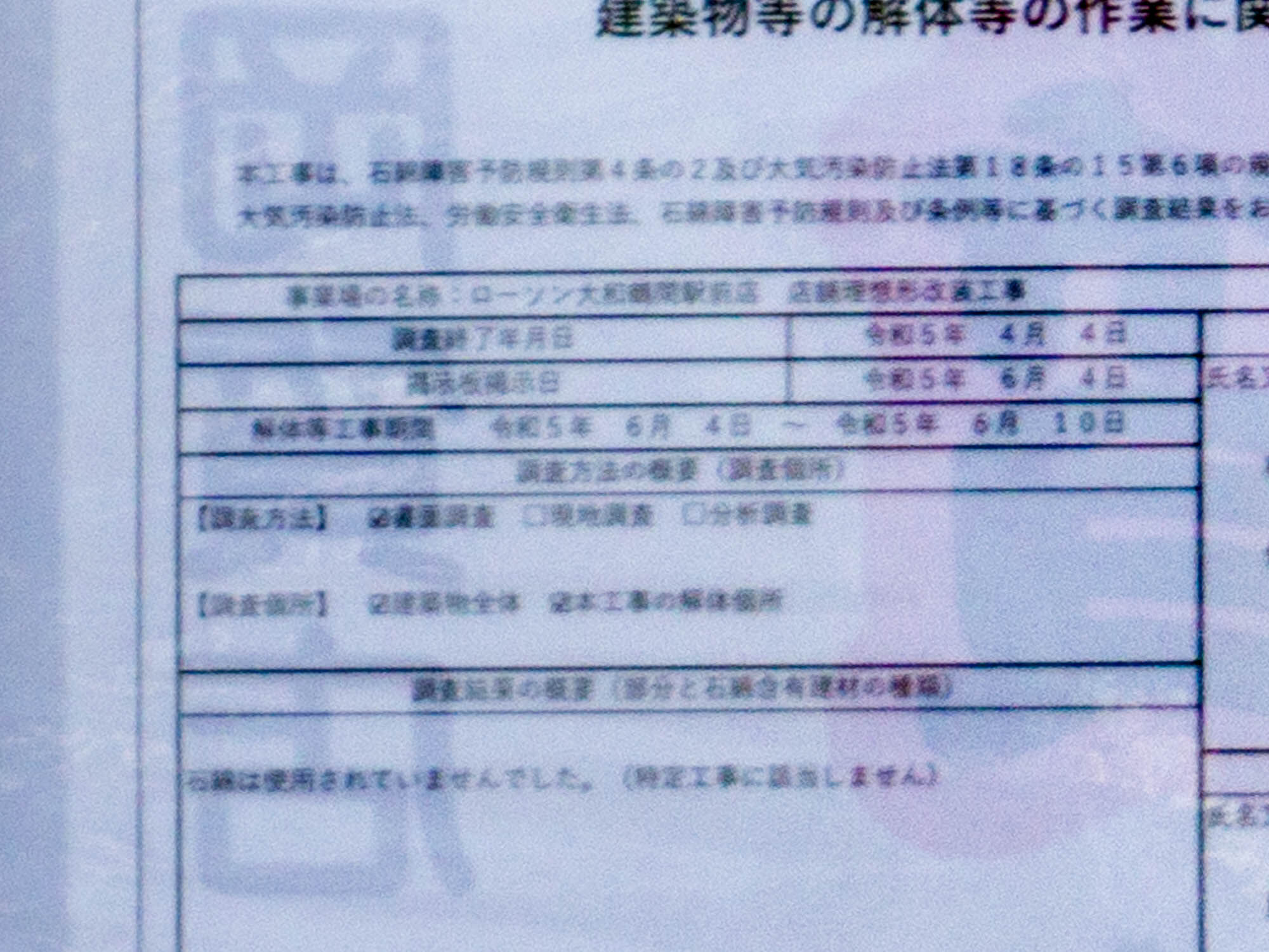 解体等工事期間は6月4日〜10日ですが、店舗休業期間は6月3日9:00〜6月12日7:00とのこと。
