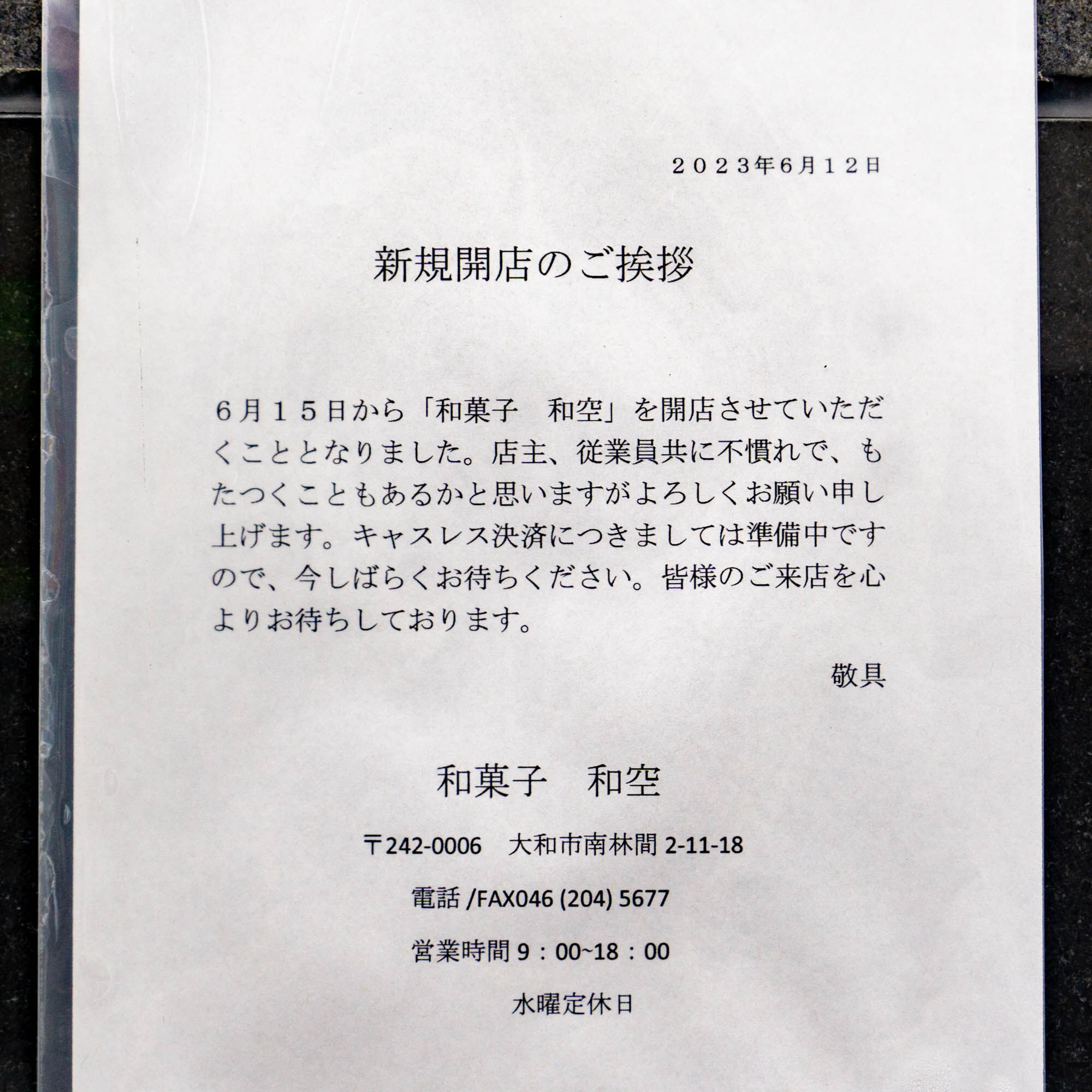 南林間につくってた和菓子店「和空」がオープンしてる。『和空鉢の木』があったとこ