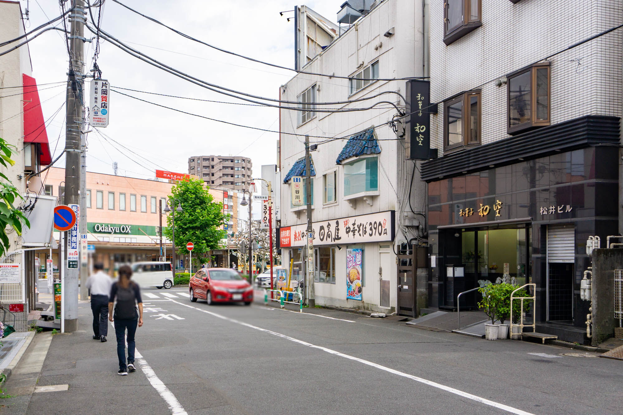 店舗の左手にはすぐ南林間駅が。隣は「日高屋 南林間店」。