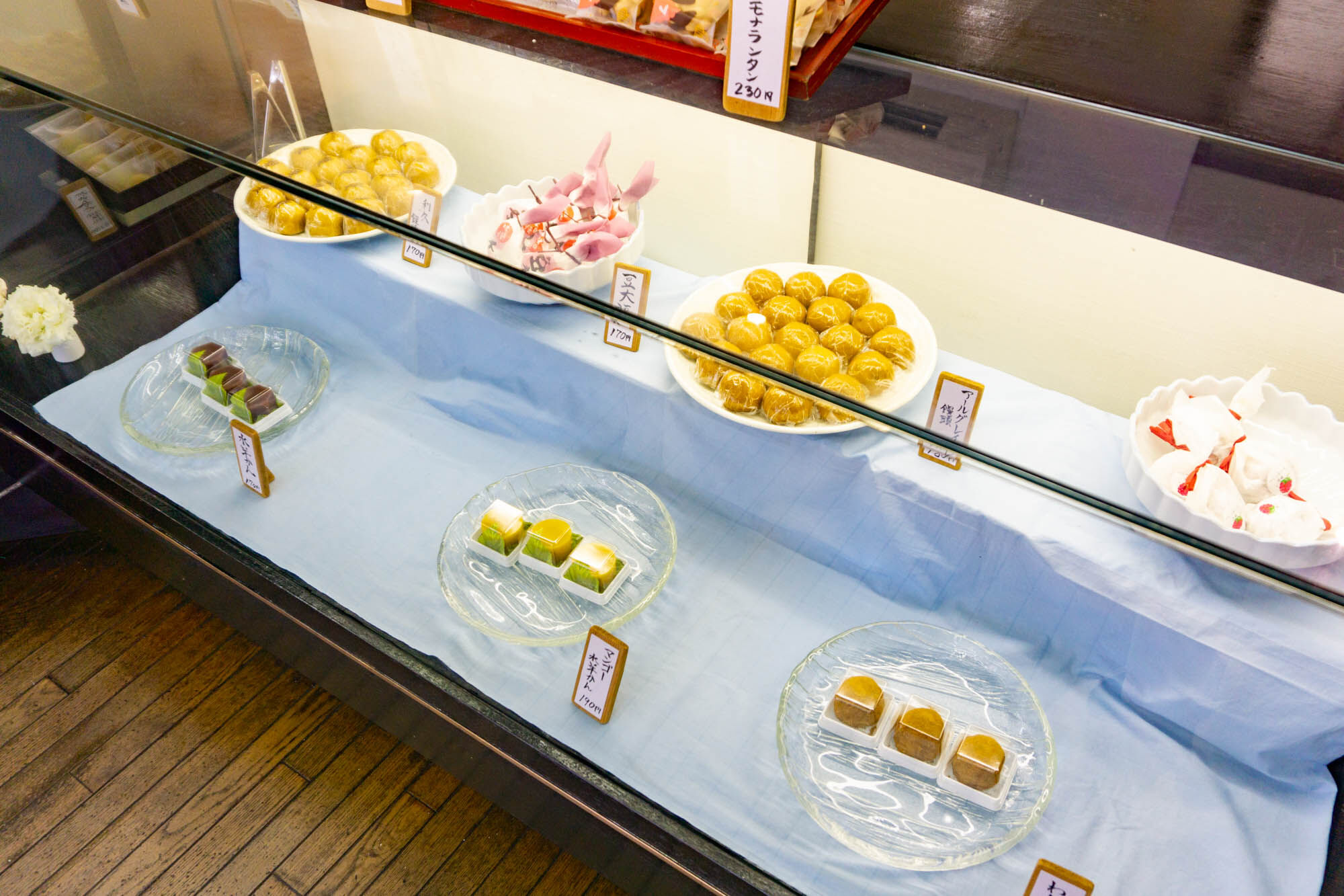 この写真下に写っている茶色の饅頭は「アールグレイ饅頭」。この他にも「マンゴー水ようかん」など、他ではあまり見たことのない和菓子も並んでいました!