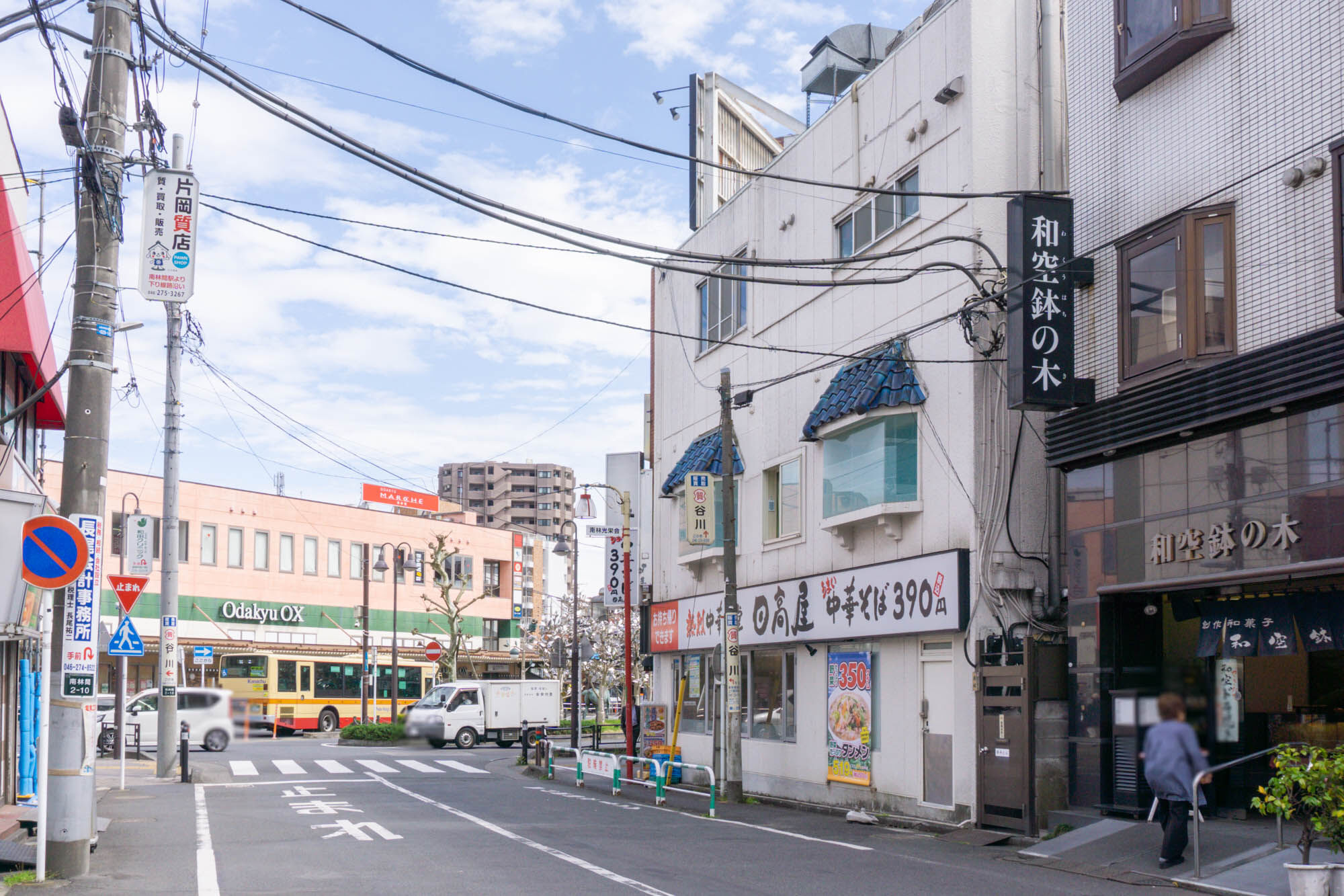 店舗の左手にはすぐ南林間駅が。隣は「日高屋 南林間店」。