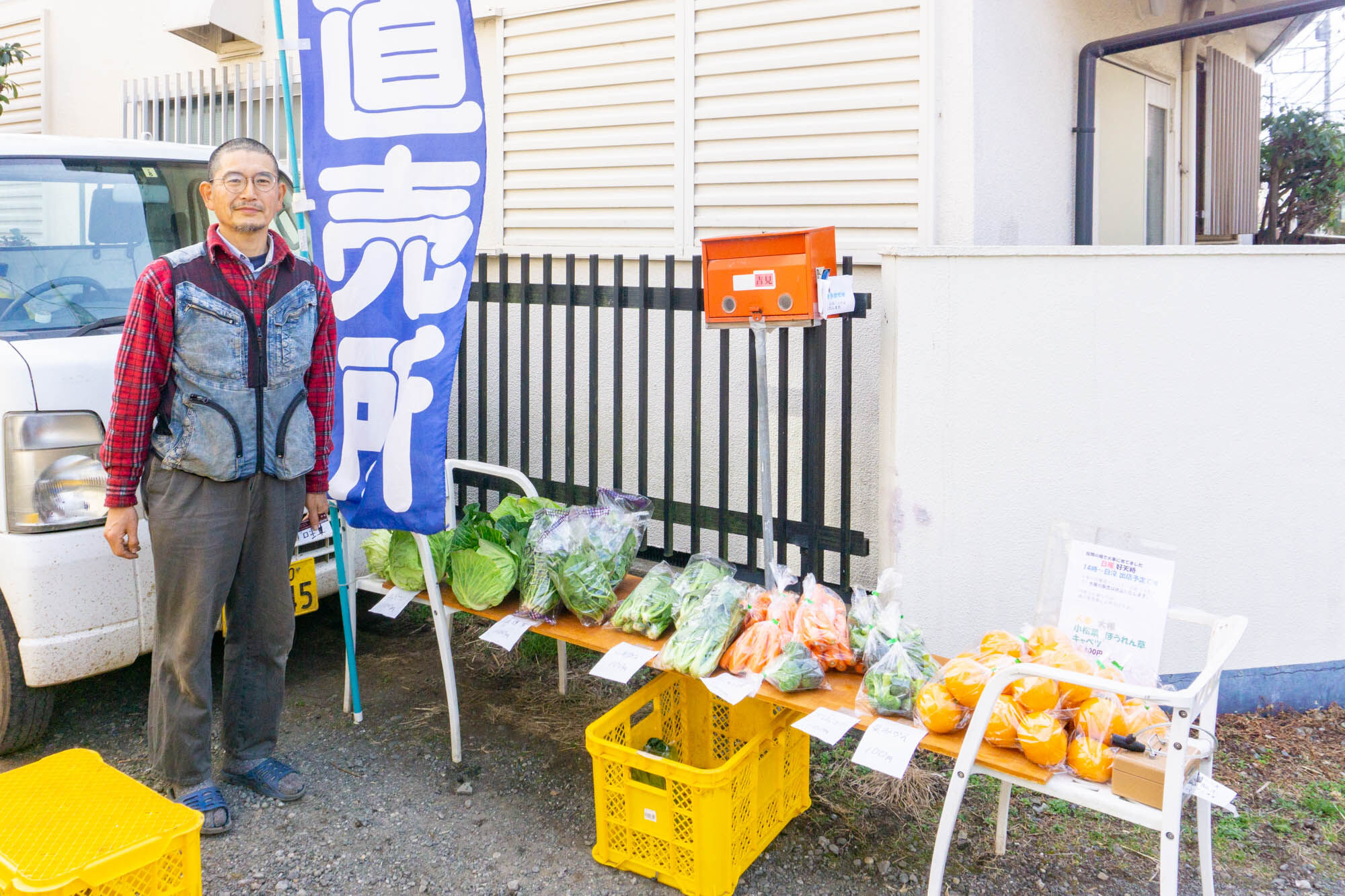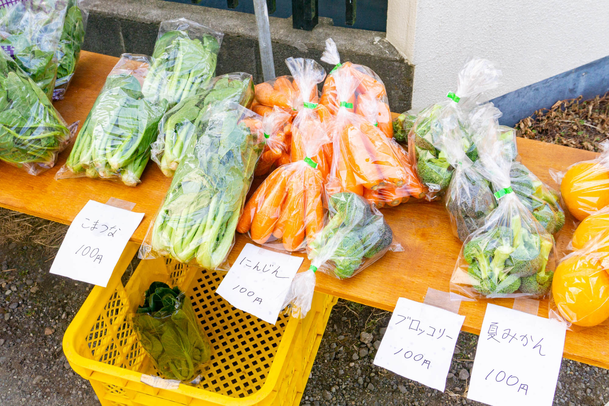 訪れた日は「キャベツ・小松菜・人参・ブロッコリー・夏みかん」がありました。