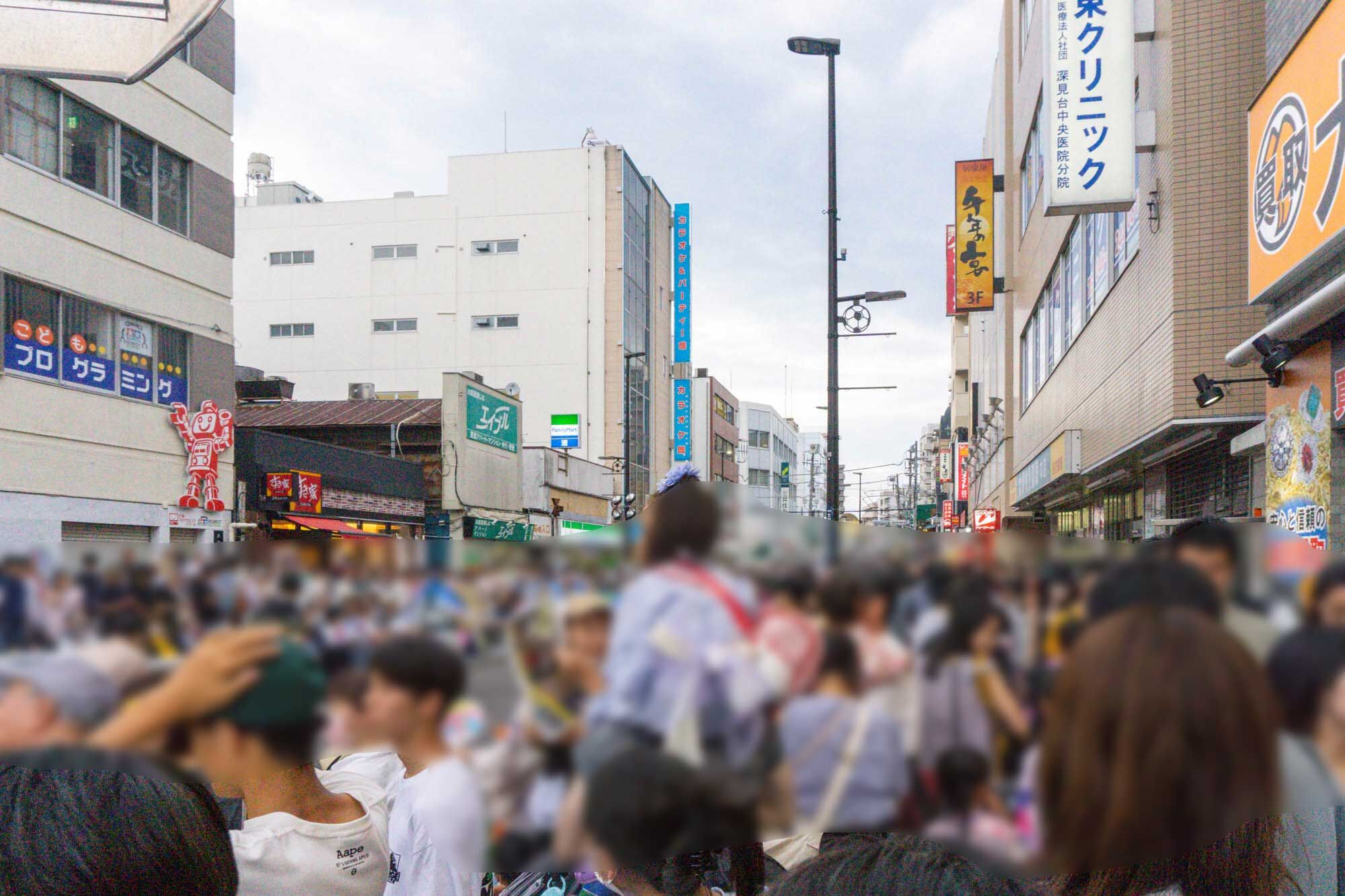 到着時点で阿波おどりはすでに始まっており、歩道の両サイドに観覧している人が溢れています。