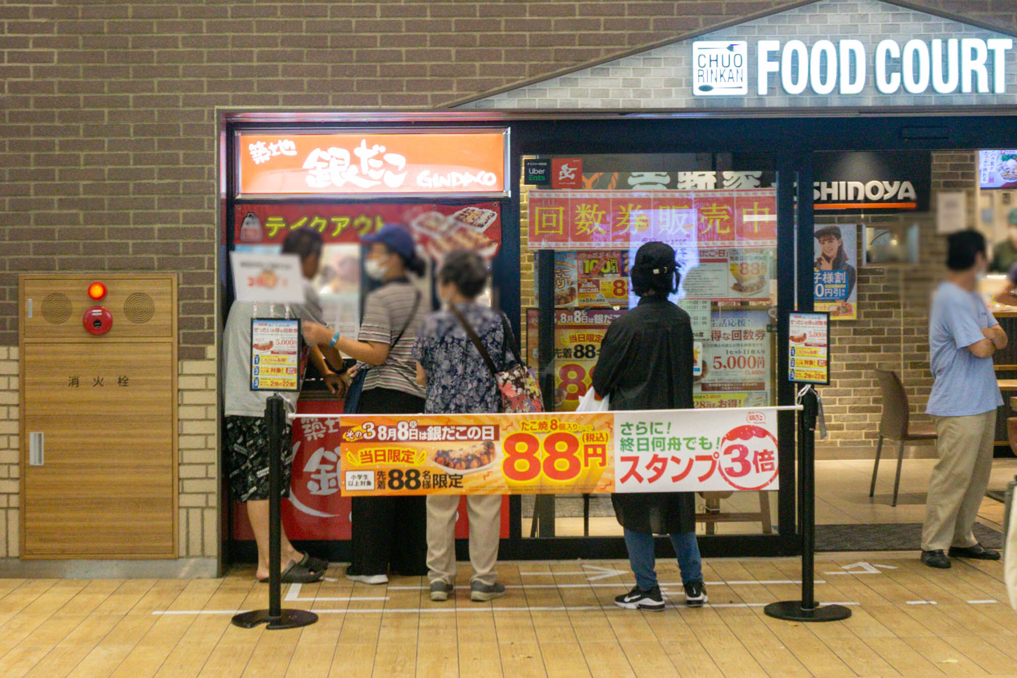 今日は以前記事で紹介した「8月8日限定、先着88名 1船88円」で銀だこのたこ焼きが購入できる日。