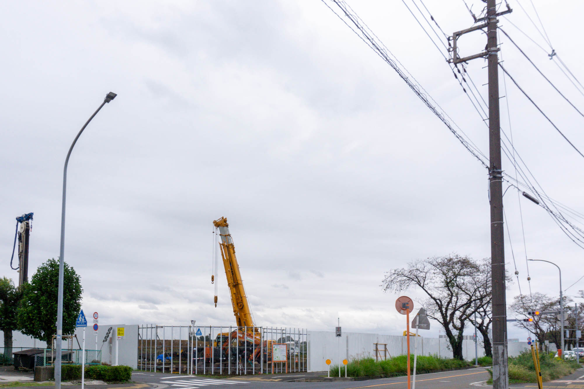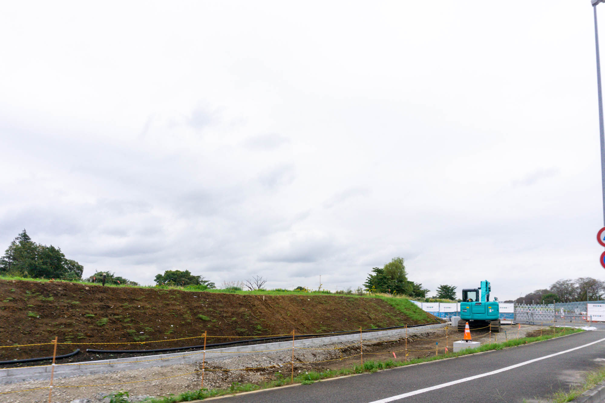 工事車両の出入り口から少し中の様子は伺えましたが、まだ建物などは建っていないよう。