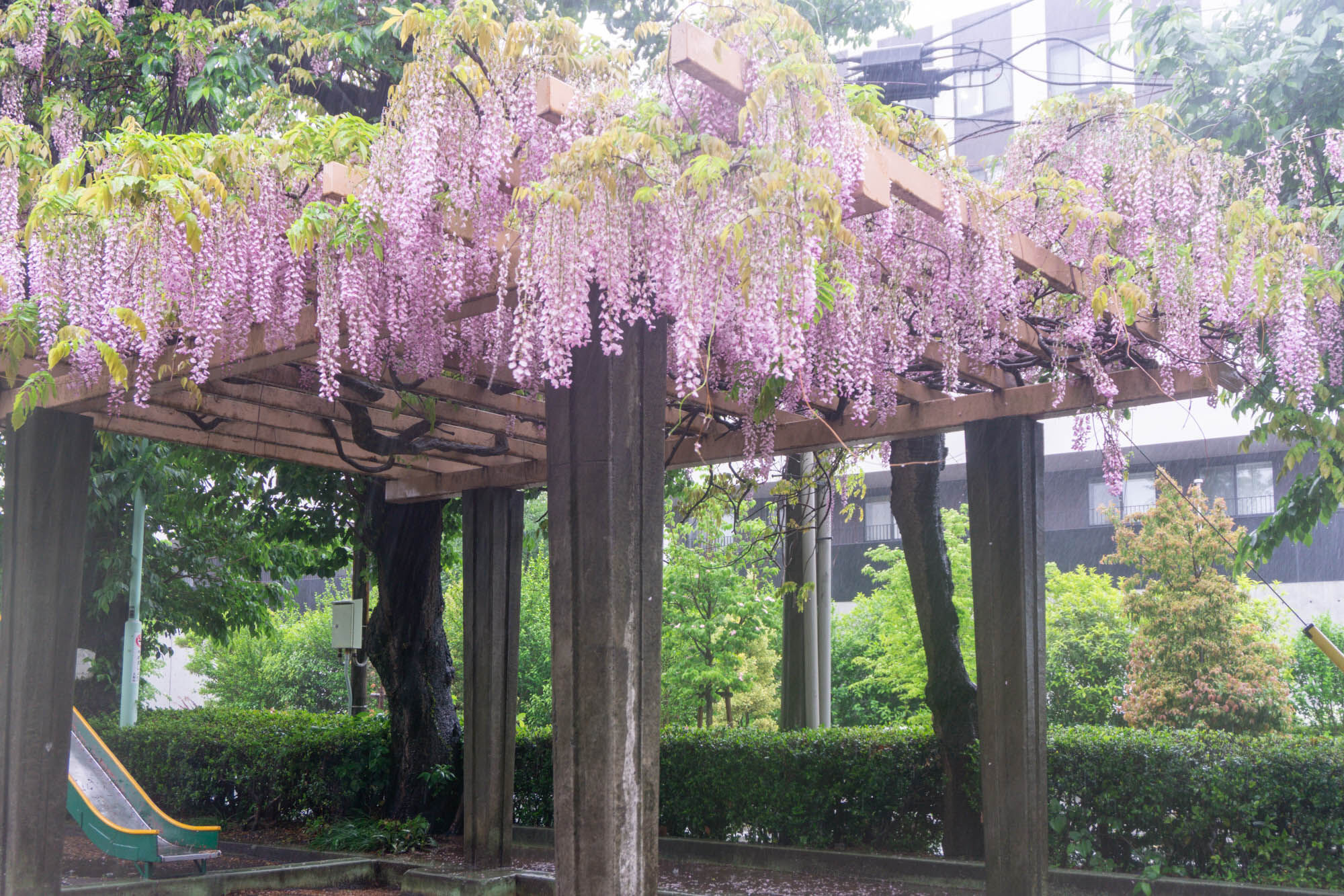 中央6号公園に咲いている藤棚が満開でした。
