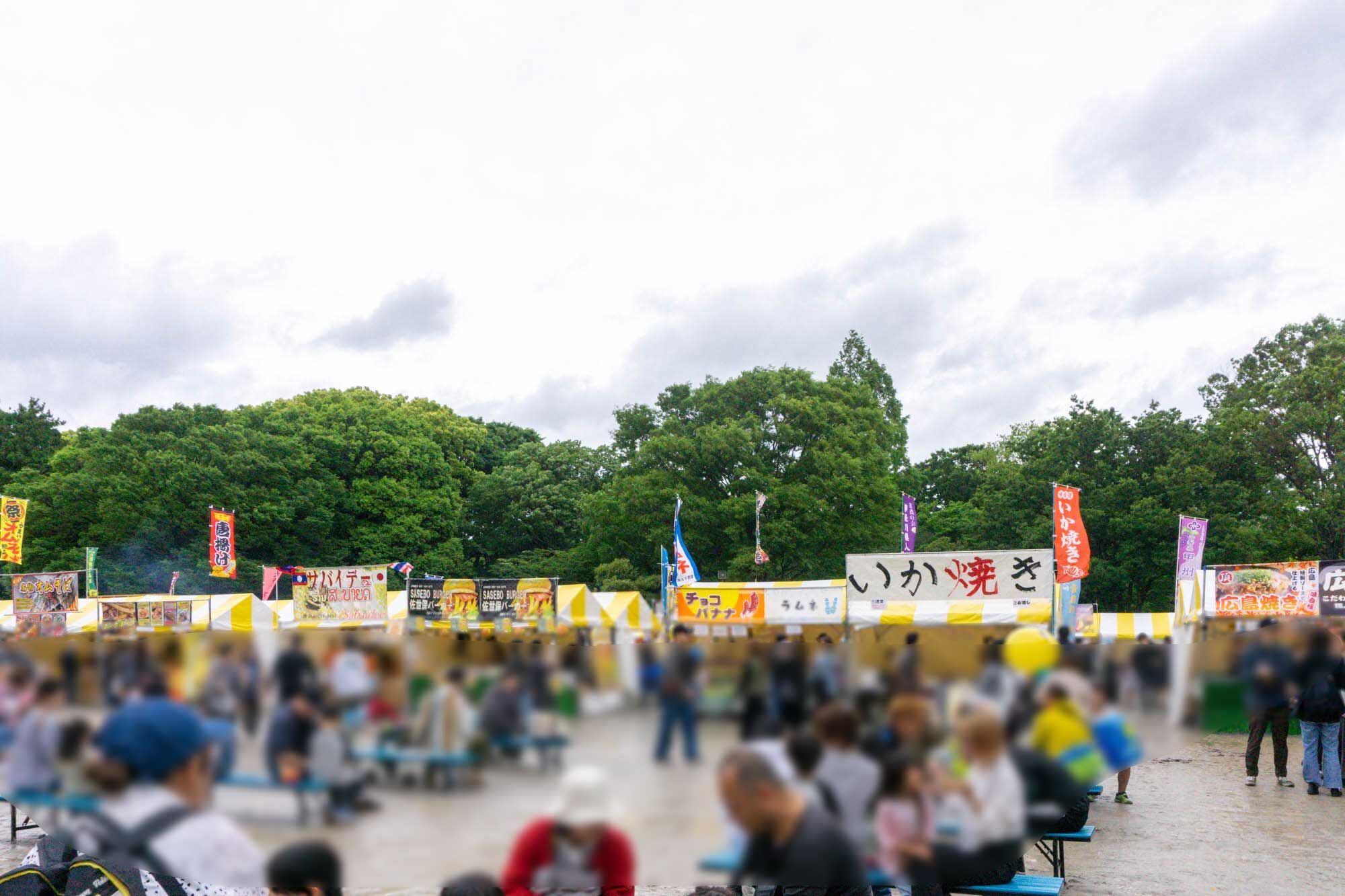 ベンチも設置されていて、皆さん好きな屋台で買って食べていましたよ〜!