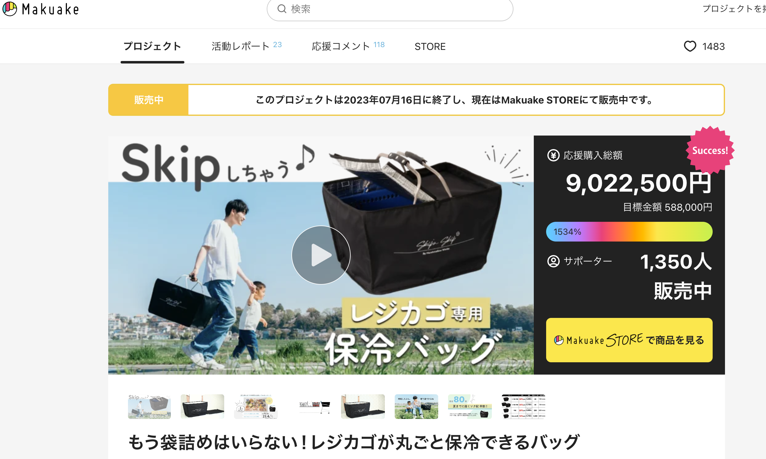 初めて挑戦したクラウドファンディング(Makuake)では、支援者1300人超、売上約900万円という大きな反響をいただきました。