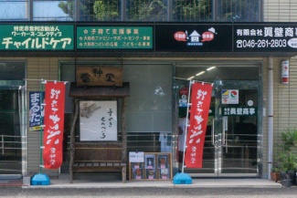 - 鶴間の「(有)真壁商事」の雷神堂コーナーがリニューアルしてる。店舗前にベンチも設置