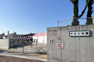 - やまと公園にタープテント設置されてる